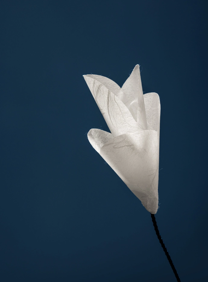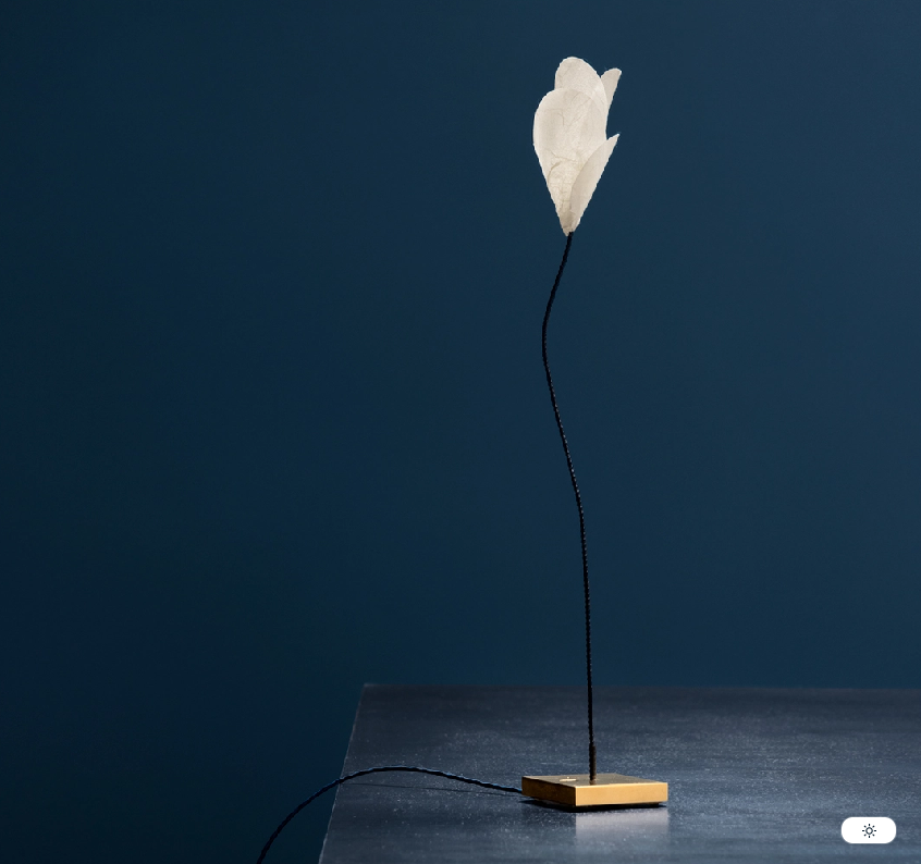 Die auswechselbaren Blütenblätter aus Reispapier beherbergen eine speziell entwickelte LED-Platine, die ein warmes, bernsteinfarbenes Licht ausstrahlt.