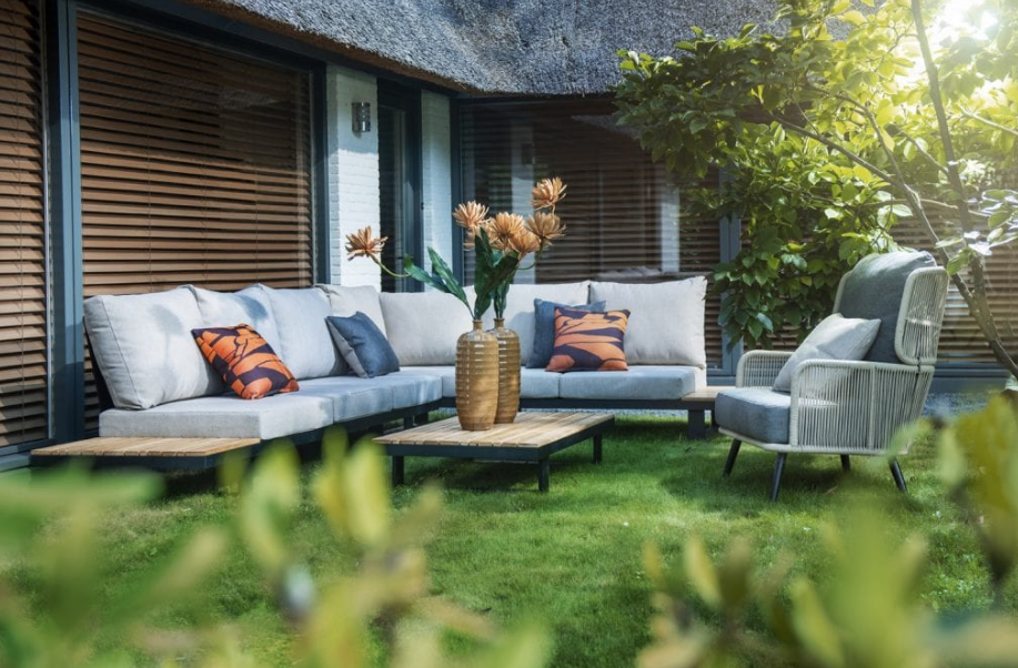 Die moderne Outdoor-Sitzgruppe bietet viel Platz für Ihre Gäste und ist perfekt geeignet für gesellige Zusammenkünfte im Freien.