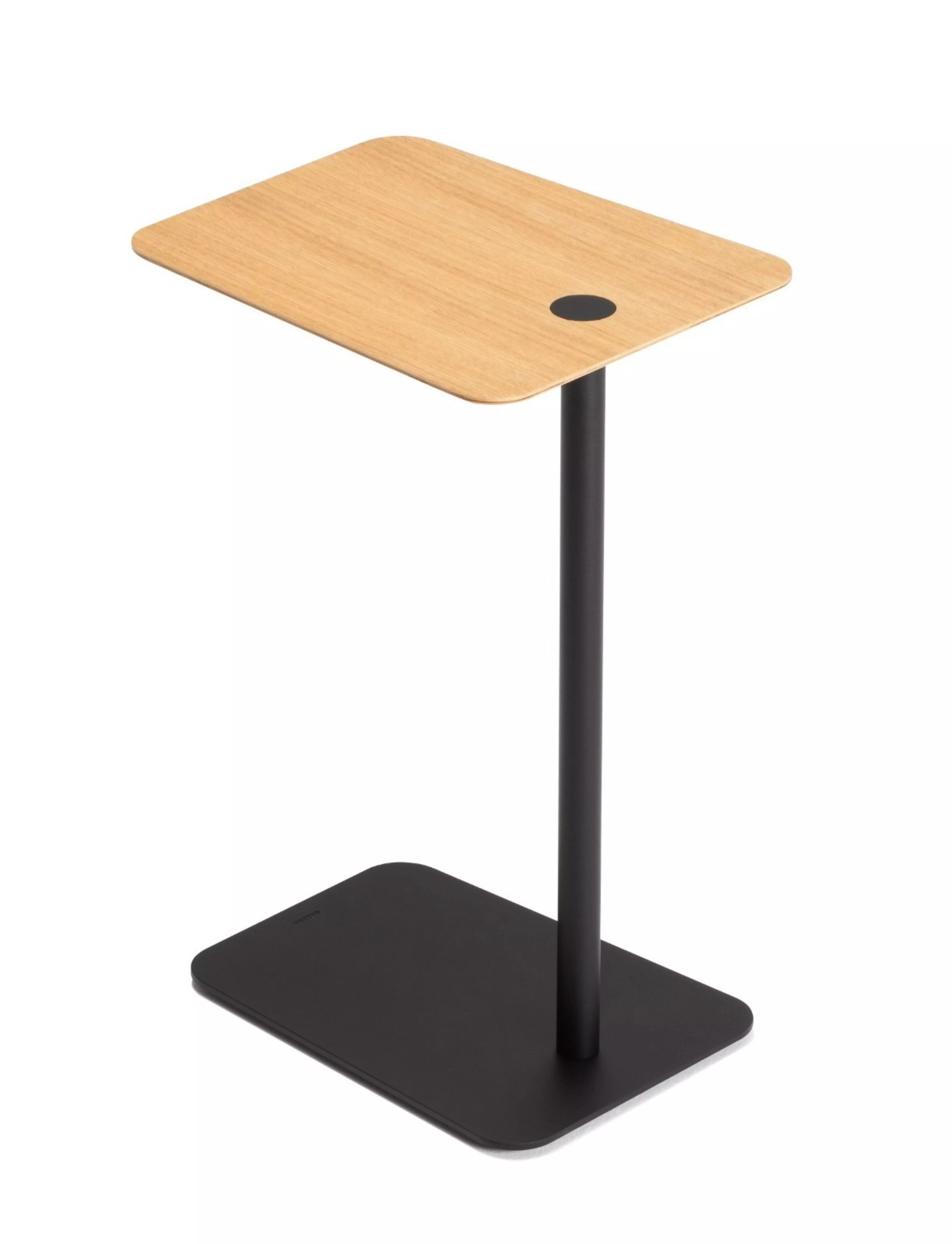 Der Loop Beistelltisch kann auch für andere Zwecke verwendet werden - als Akzenttisch, Nachttisch oder Nachttablett. Sein Metallgestell ist pulverbeschichtet, die Tischplatte ist in Eichenfurnier und Linoleum erhältlich.