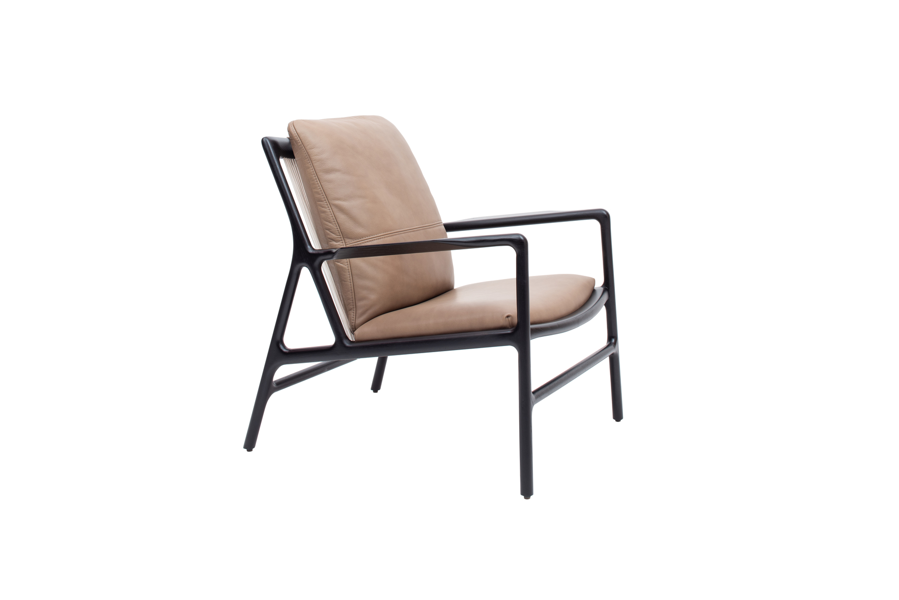 Charakteristisch für den Loungestuhl ist das handgefertigte Gestell aus massivem Holz, das mit traditionellen Verbindungen gefertigt wird. Eine Besonderheit ist die innovative Seilkonstruktion, die als Träger für die Kissen dient. Diese Lösung sorgt nicht nur für hohen Sitzkomfort, sondern trennt optisch Sitz- und Rückenpolster vom Rahmen – ein spannender Kontrast, der den Stuhl einzigartig macht.