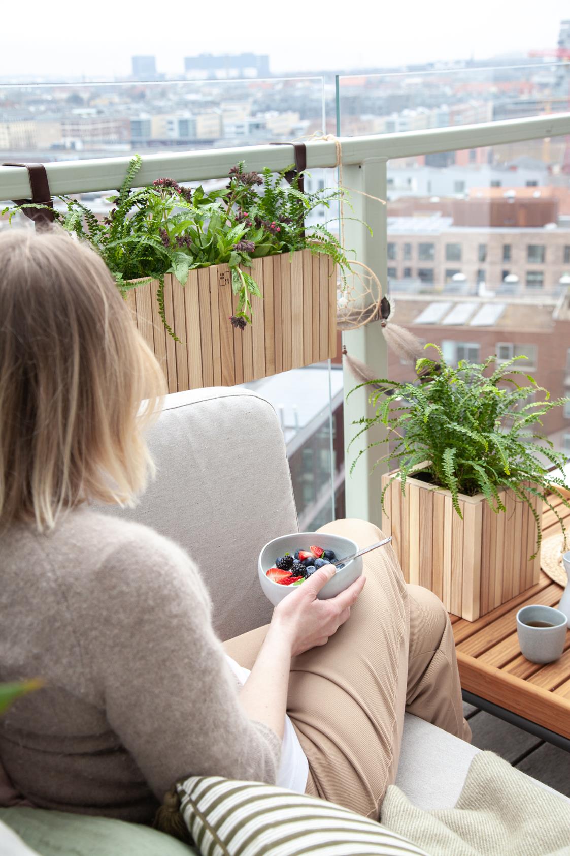 Um die Kästen am Balkon zu befestigen, bestellst du den Artikel GrowON with holes und dazu die Gurte deiner Wahl.