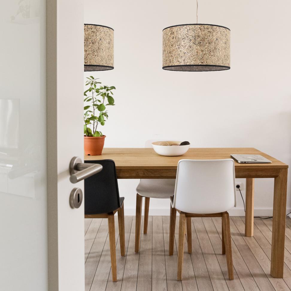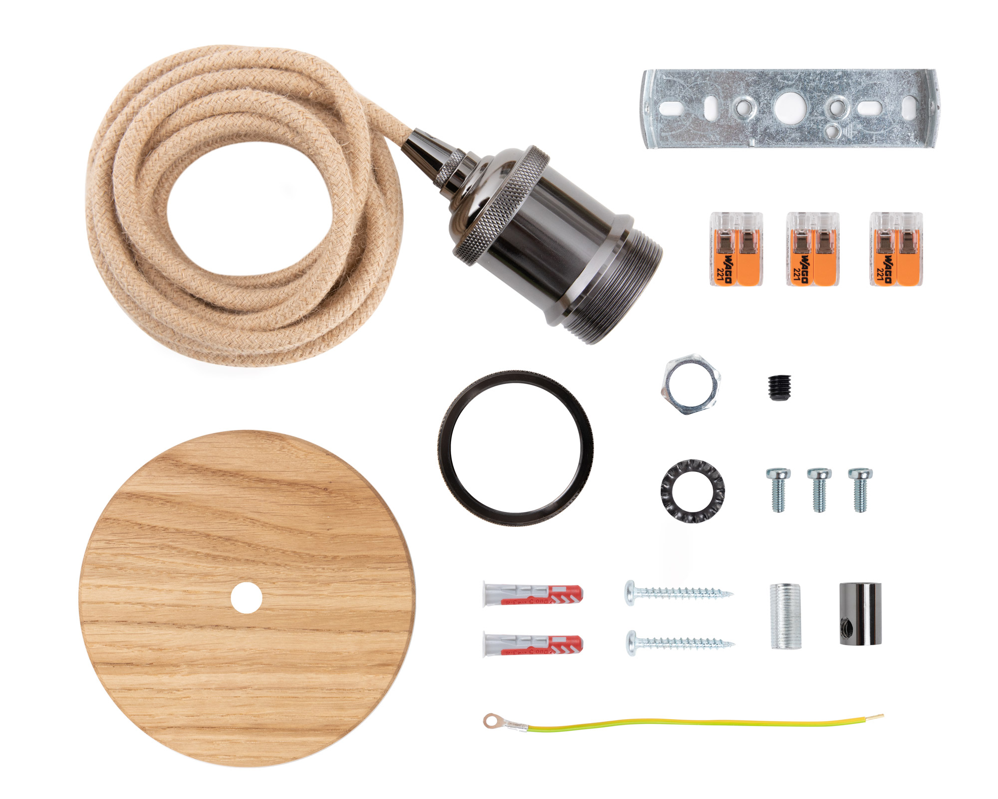 Der Baldachin aus Eichenholz (wahlweise auch in Zirbe oder Walnuss erhältlich) sowie das ummantelte Kabel aus Jutefasern setzen zusätzlich natürliche Akzente in deinem Zuhause.