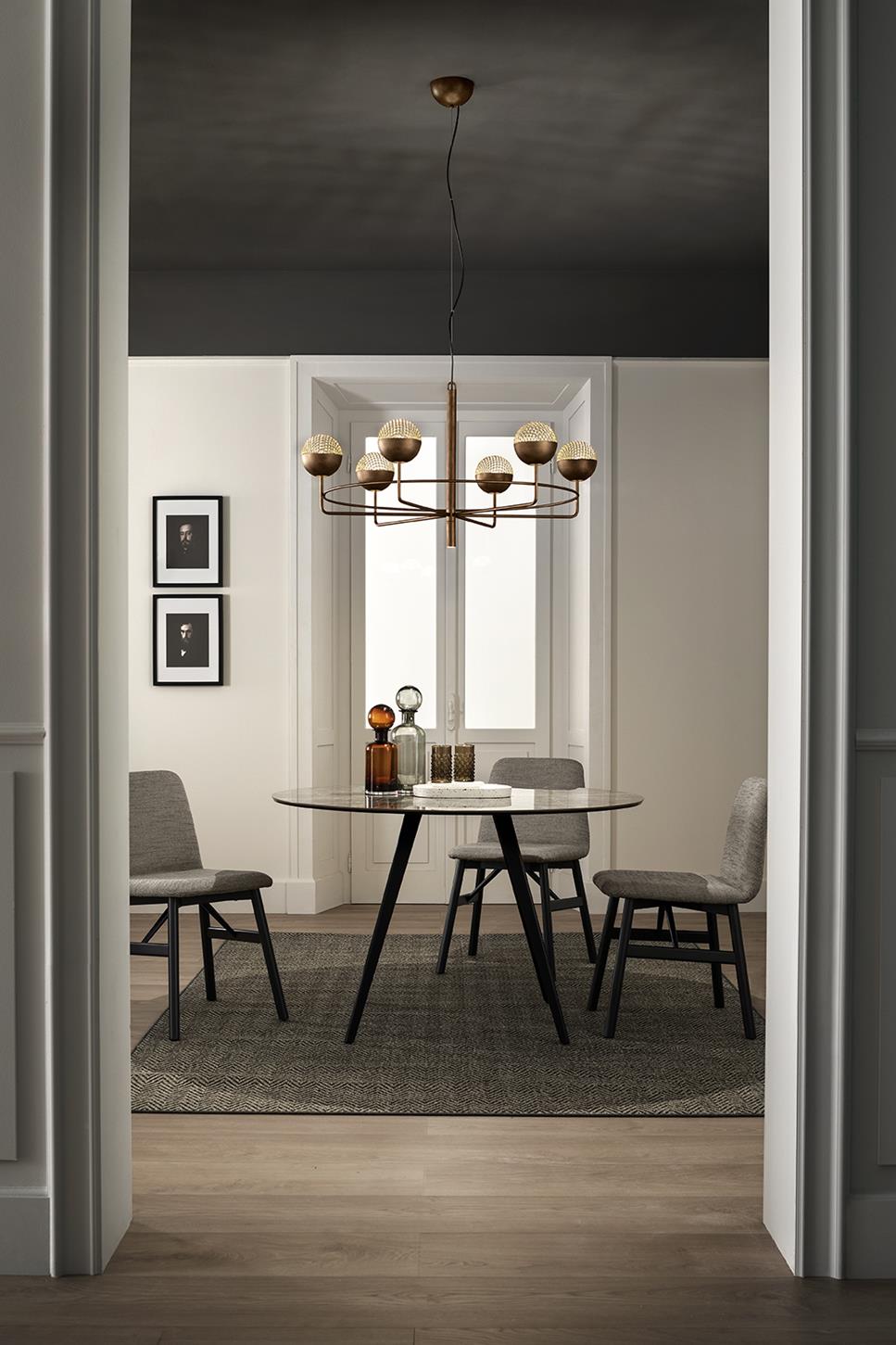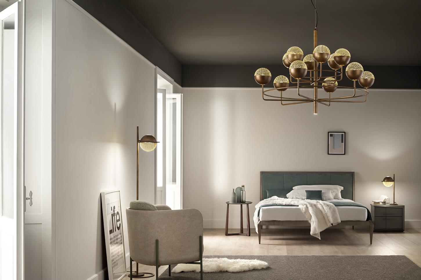 Die Kollektion umfasst eine Tisch-, Steh-, Wand und verschiedene Hängeleuchten.