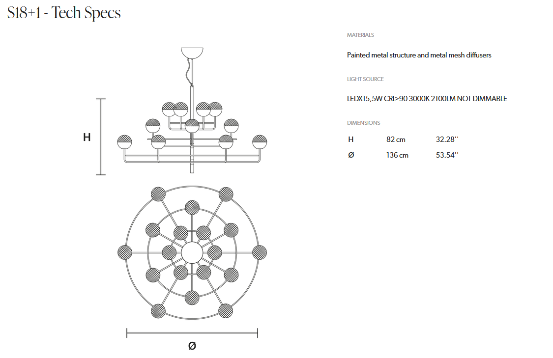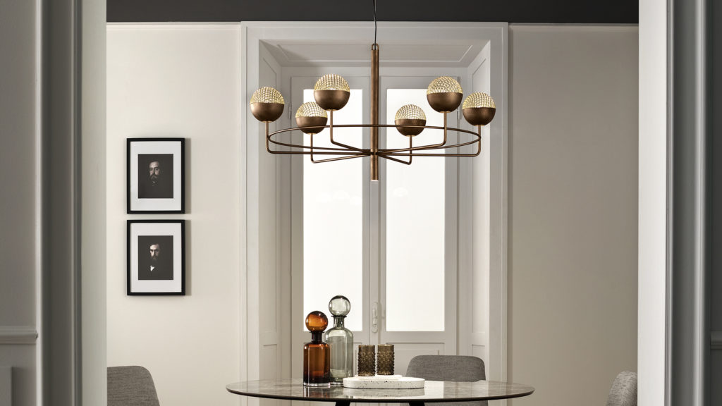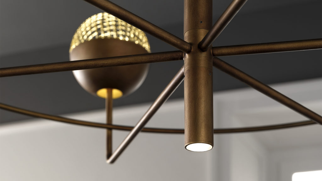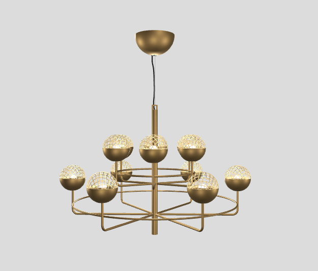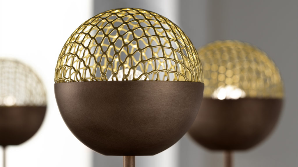 Diese wird zu einer perfekten, erkennbaren und einzigartigen Form durch ein Netz, das nicht das Licht zurückhält, sondern stattdessen ein Muster aus Licht und Schatten erzeugt. Es verwandelt das Metall in ein leuchtendes Juwel.