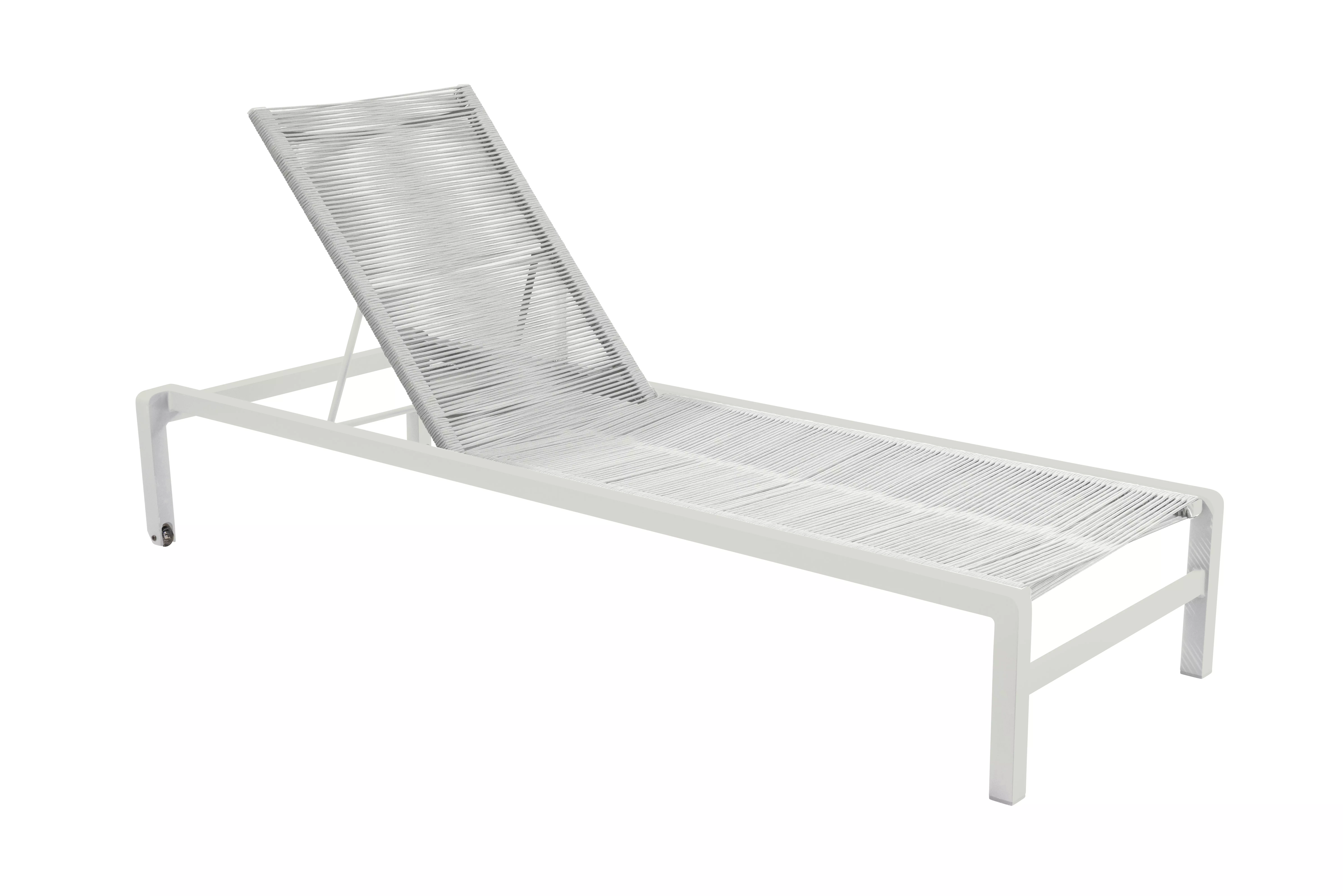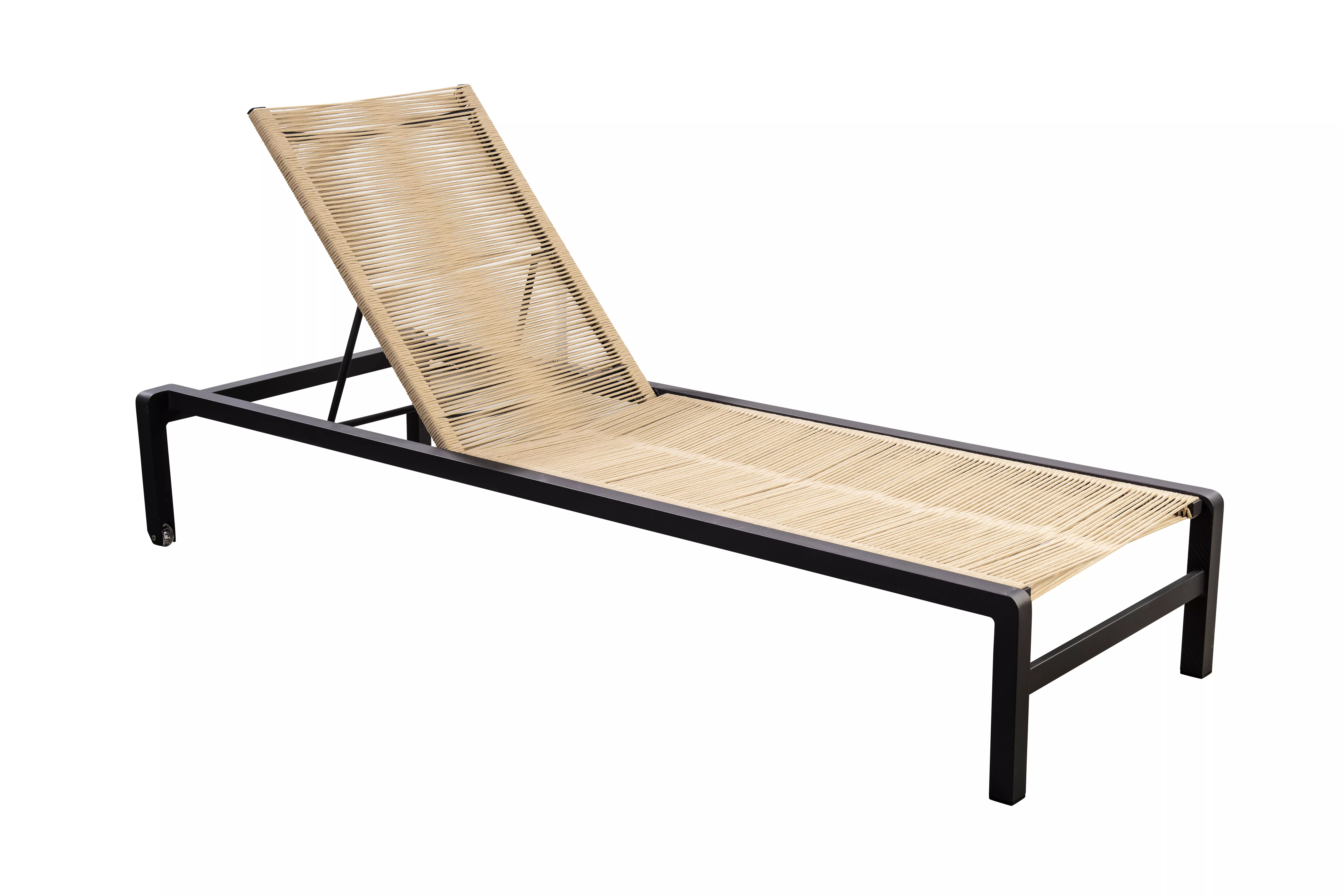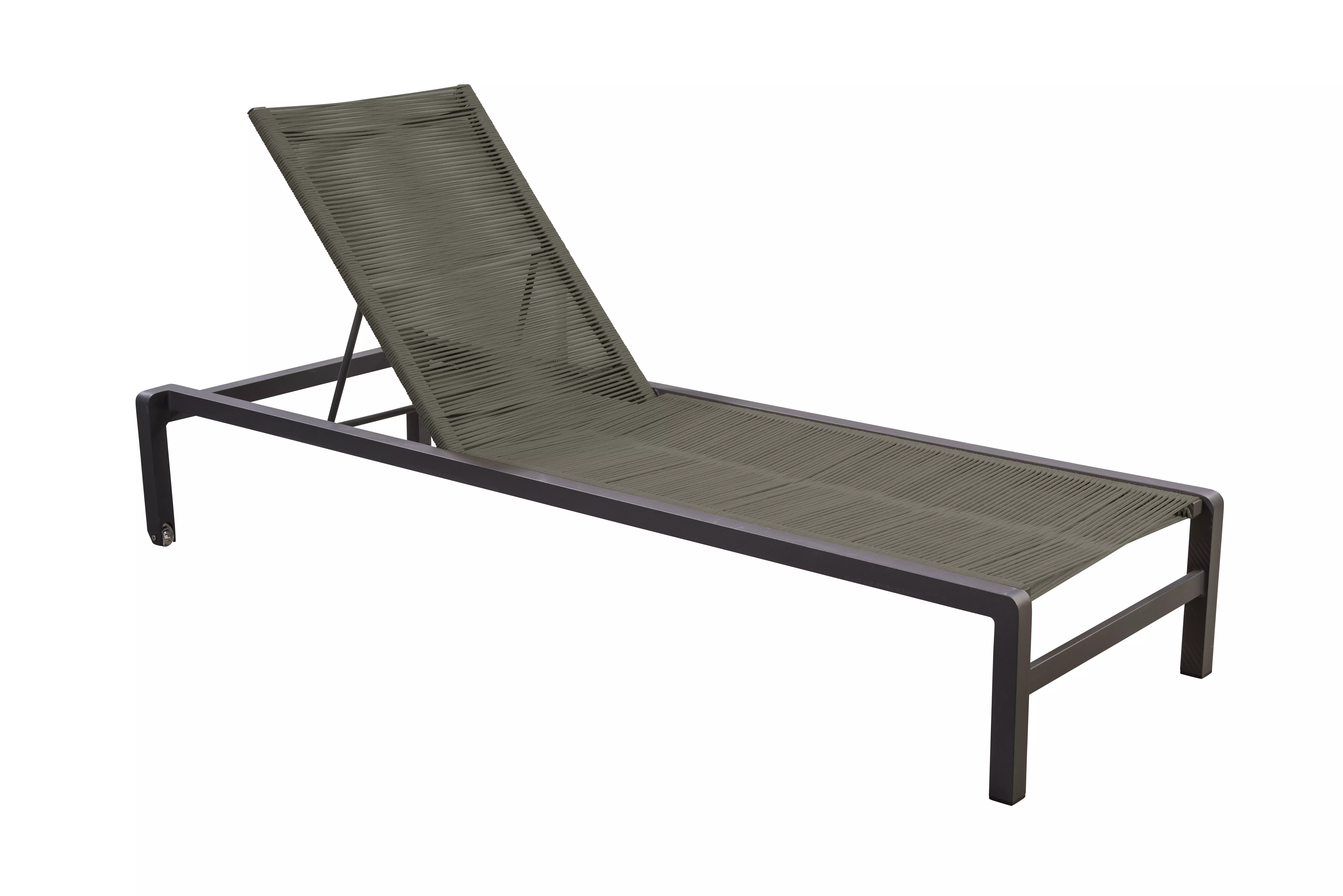 Die Liegefläche besteht aus elastischem, wetterfestem Rope-Material, das Langlebigkeit und Komfort in allen Wetterlagen gewährleistet. Dieses robuste Material hält sowohl Hitze als auch Feuchtigkeit stand.