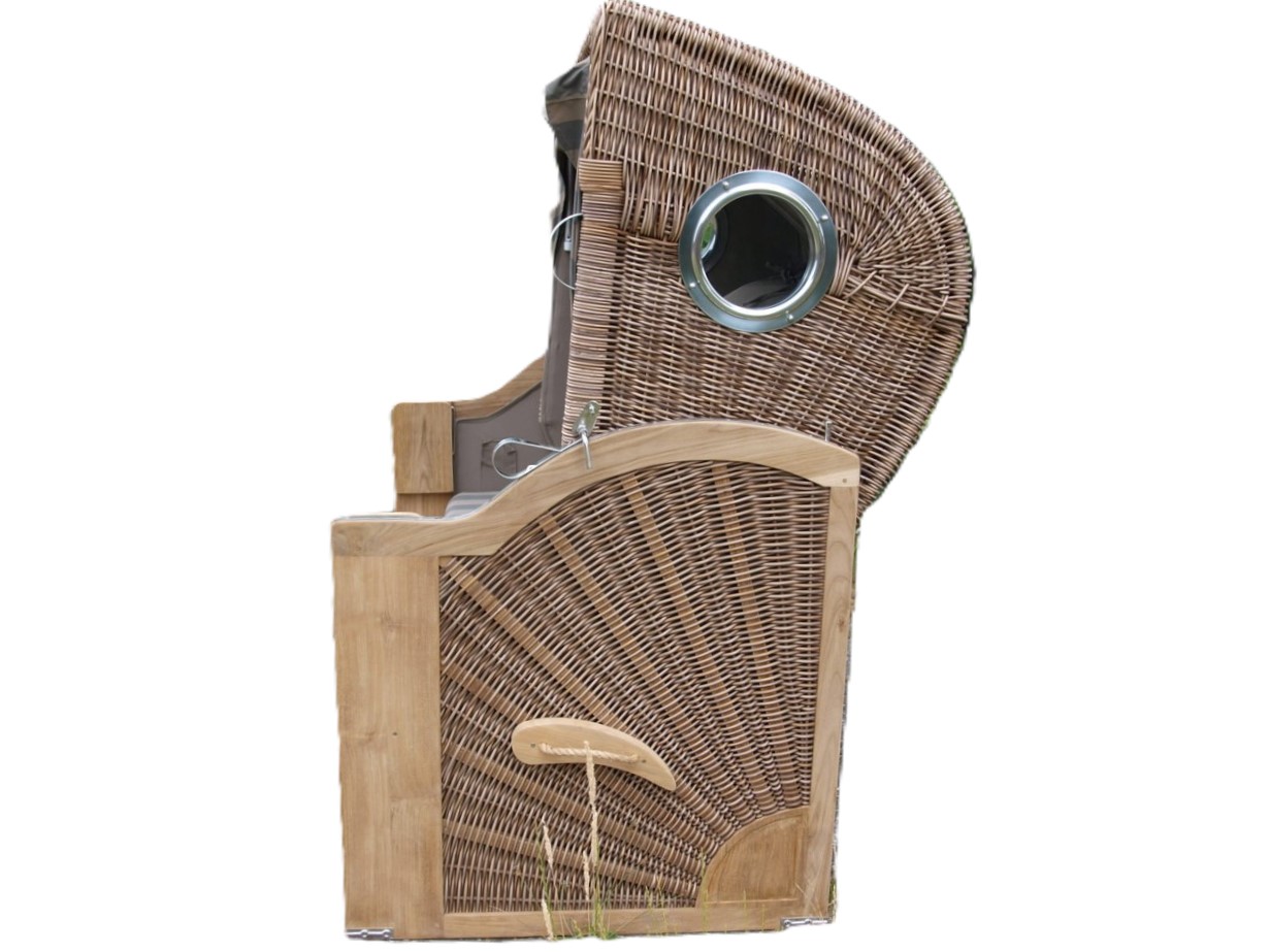 Die Haube und der rückwärtige Korpus sind mit PE-Rattangeflecht unterlegt, um zusätzlichen Schutz vor Durchfeuchtung und Windschutz zu bieten.