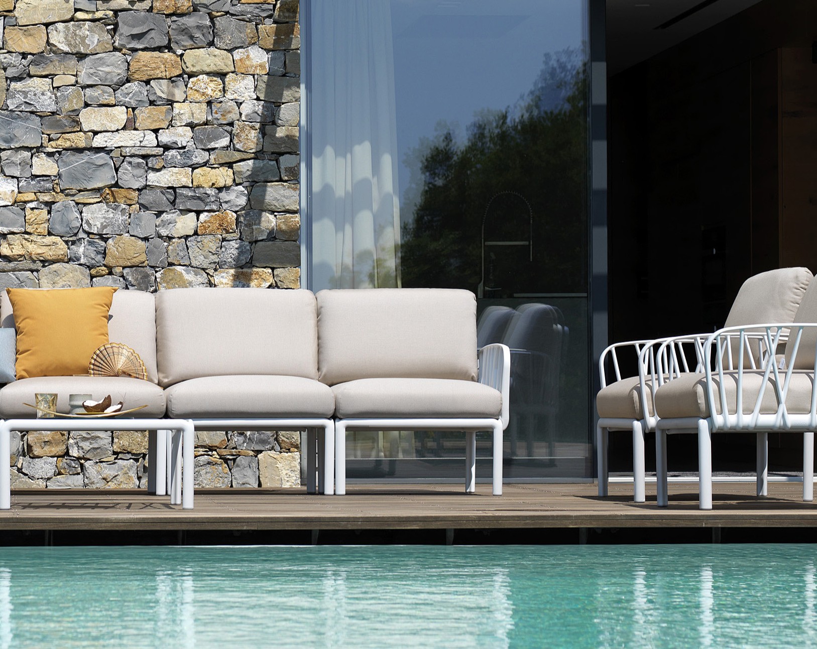 Diese Modul kann als Anfangs- oder Endkomponente für das modulare Outdoor Sofa Komod genutzt werden.