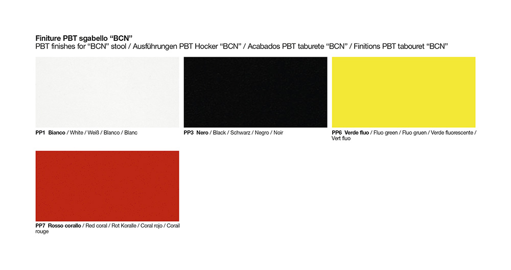 Polybutylenterephthalat (PBT) gehört zur Familie der Technopolymere und ist ein in der Einrichtungsbranche eher unübliches Material. Dieser Polyestertyp wird üblicherweise als Isoliermaterial in der Elektronikindustrie eingesetzt, da er eine beachtliche Stärke mit hoher Hitzebeständigkeit verbindet. Er besitzt einen kristallinen Aufbau und ist gegen einen Großteil der chemischen Wirkstoffe resistent.