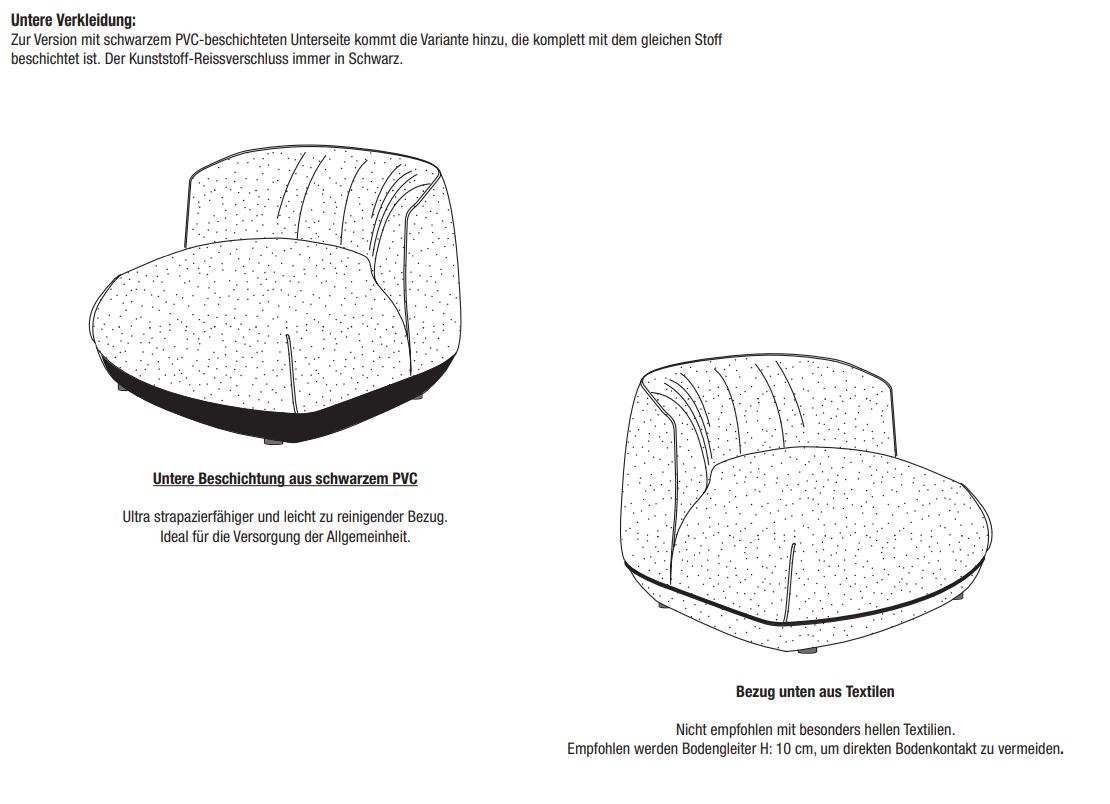 Das Design zeichnet sich durch den dunklen Streifen im unteren Bereich aus, der den direkten Kontakt zwischen dem Boden und dem Bezug verhindert.