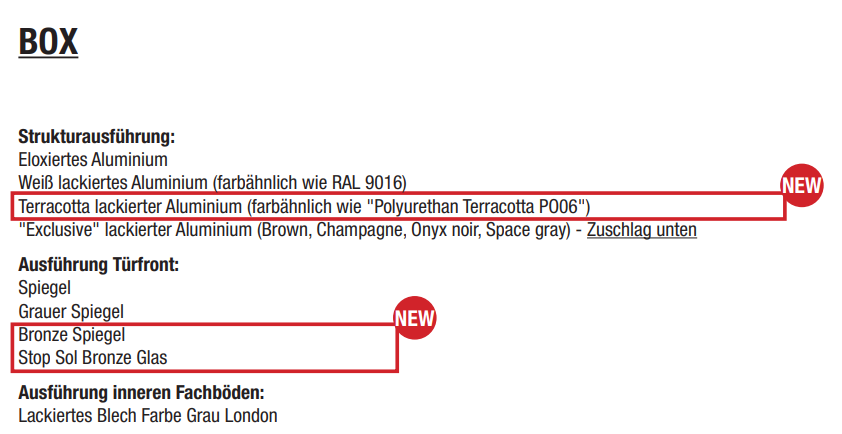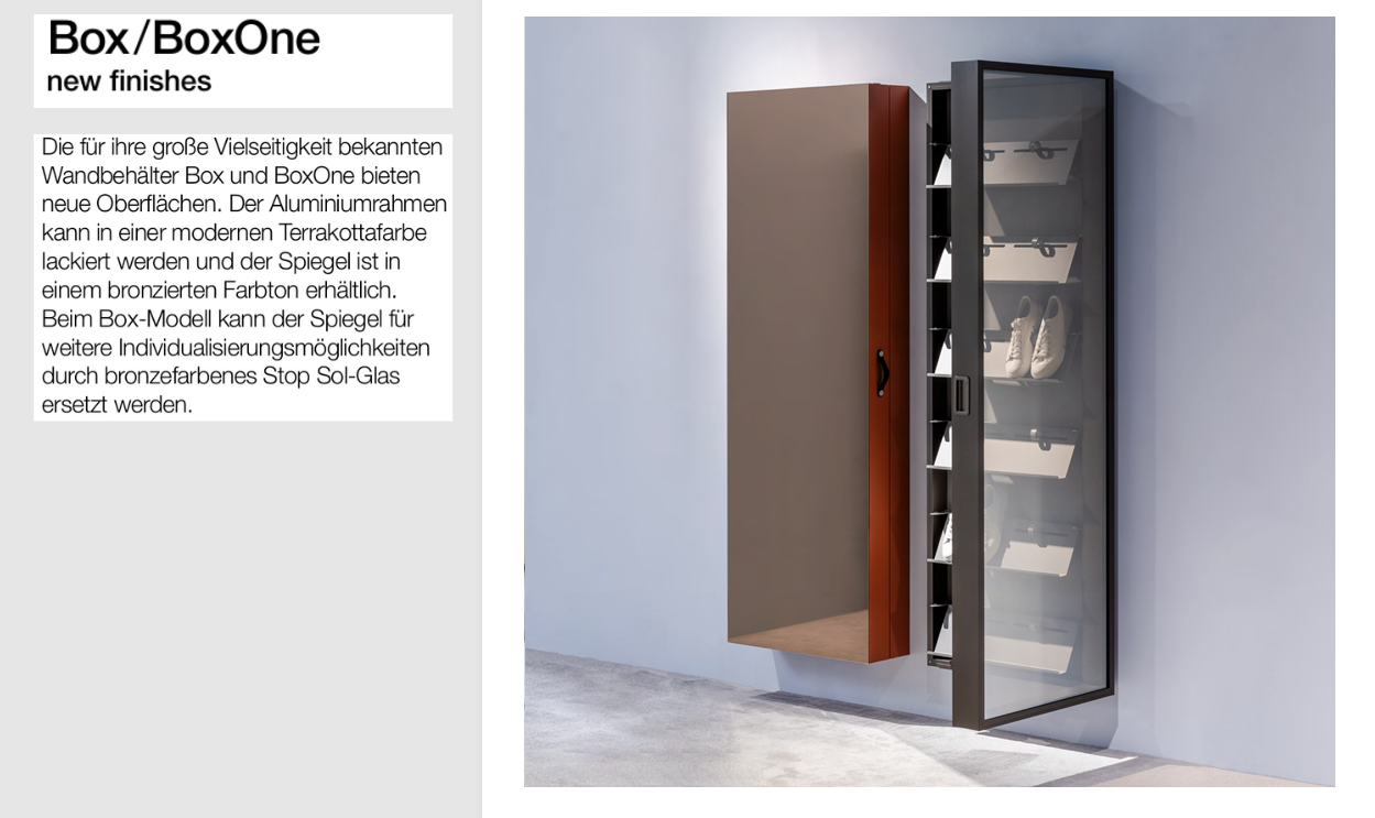 NEU Die Box ist ab sofort auch mit grauem Spiegel oder lackiertem Korpus in den Exklusiv Tönen (Champagner, Onyx Noir, Space Gray oder Brown) erhältlich.