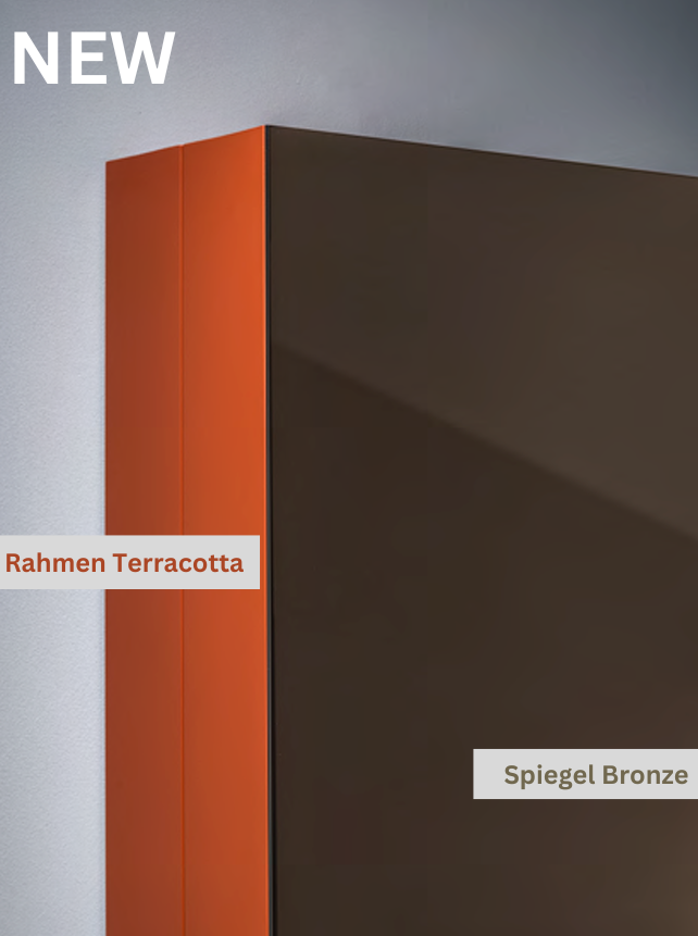 NEU AB Sommer 2024: Lackierung in Terracotta und Spiegel in Grau und Bronze.