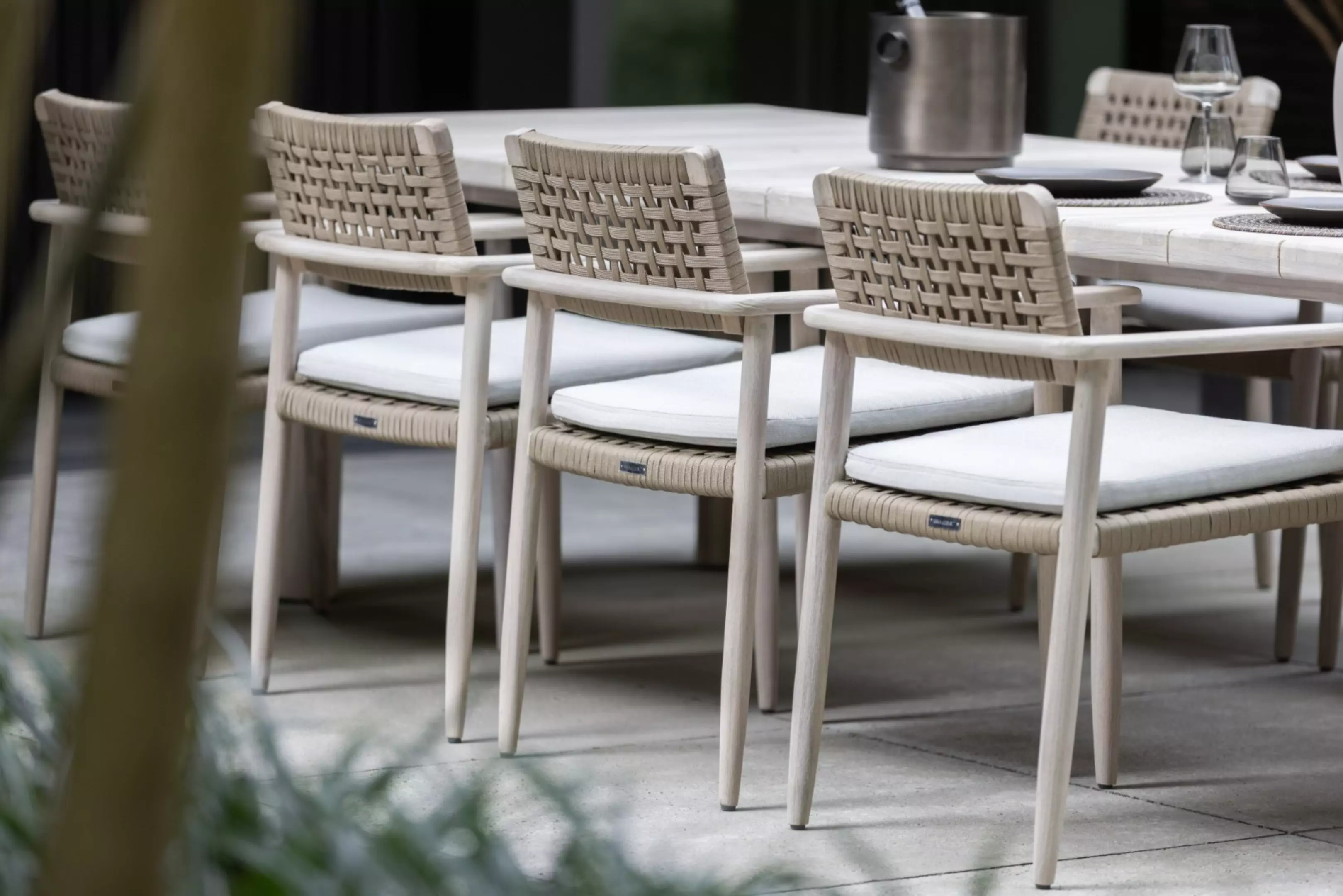 Teakmöbel erfordern keine spezielle Pflege oder zusätzlichen Schutz – gelegentliche Reinigung genügt. Wird Teakholz im Außenbereich natürlich gealtert, verändert es sich allmählich von seiner ursprünglichen Farbe zu einem sanften Silbergrau, da die Pigmente in der obersten Holzschicht mit der Zeit verblassen.