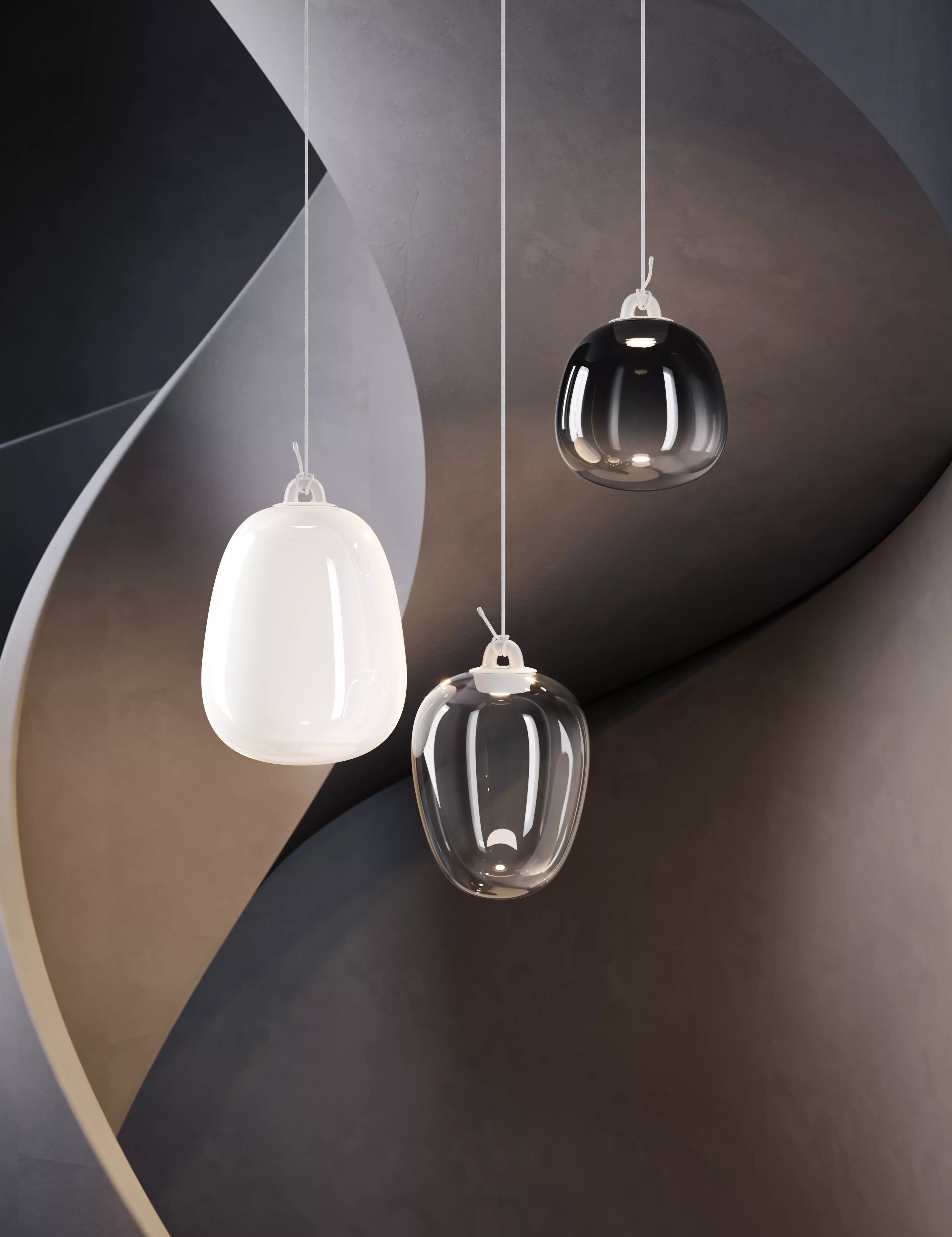 Das LED-Leuchtmittel ist verdeckt, ebenso wie das zugehörige Stromkabel: auf diese Weise ist nur das Glas zu sehen, genauso wie beim Blick durch ein Bullauge. Oblò ist in drei Formen mit sanften Linien erhältlich und bietet Beleuchtungslösungen, die in der Lage sind, einzeln oder in Komposition verschiedene Bewegungen und Rhythmen zu erzeugen, um eine Vielzahl von Ambiente zu beleuchten und zu dekorieren.