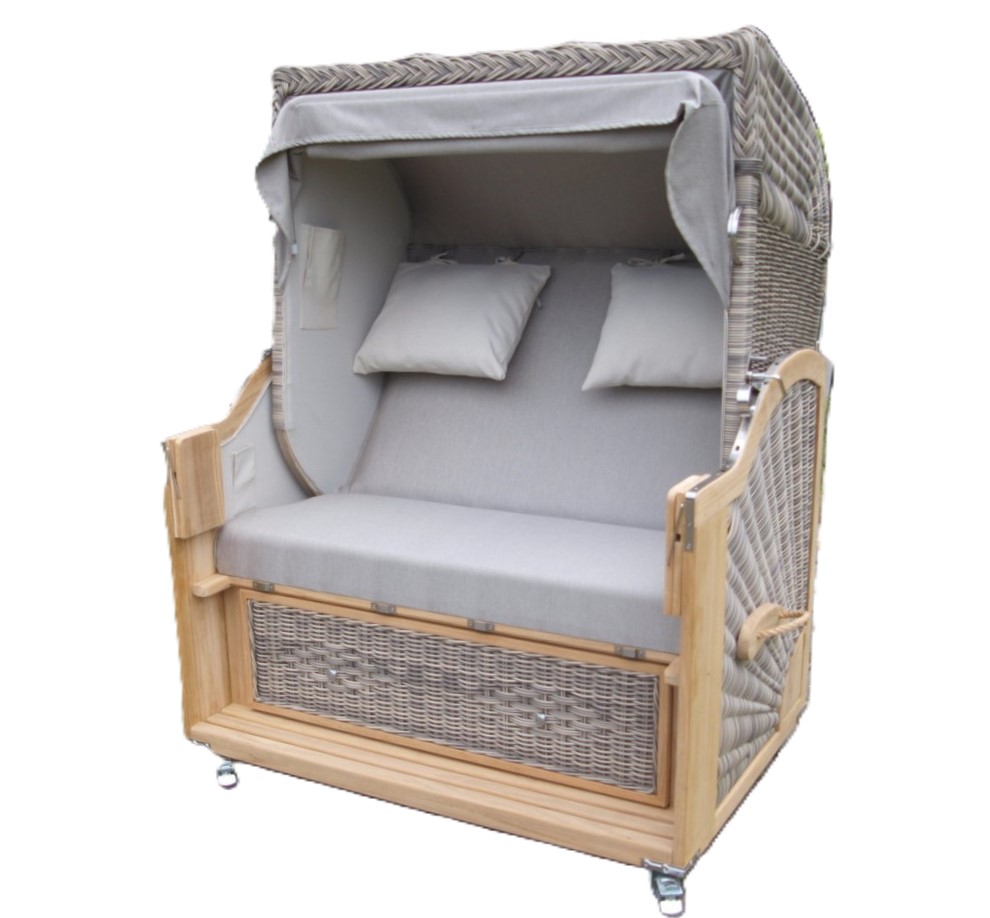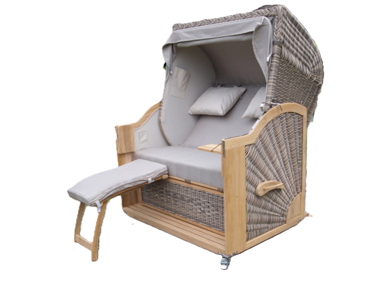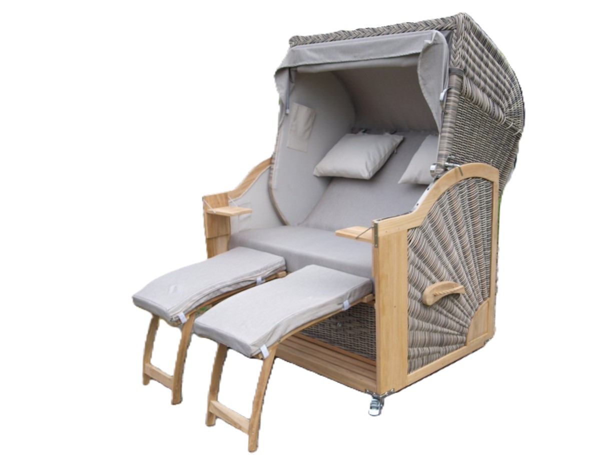 Dieser Strandkorb ist ein 2 Sitzer mit einer Breite von 110 cm und bietet somit Platz für zwei Personen.