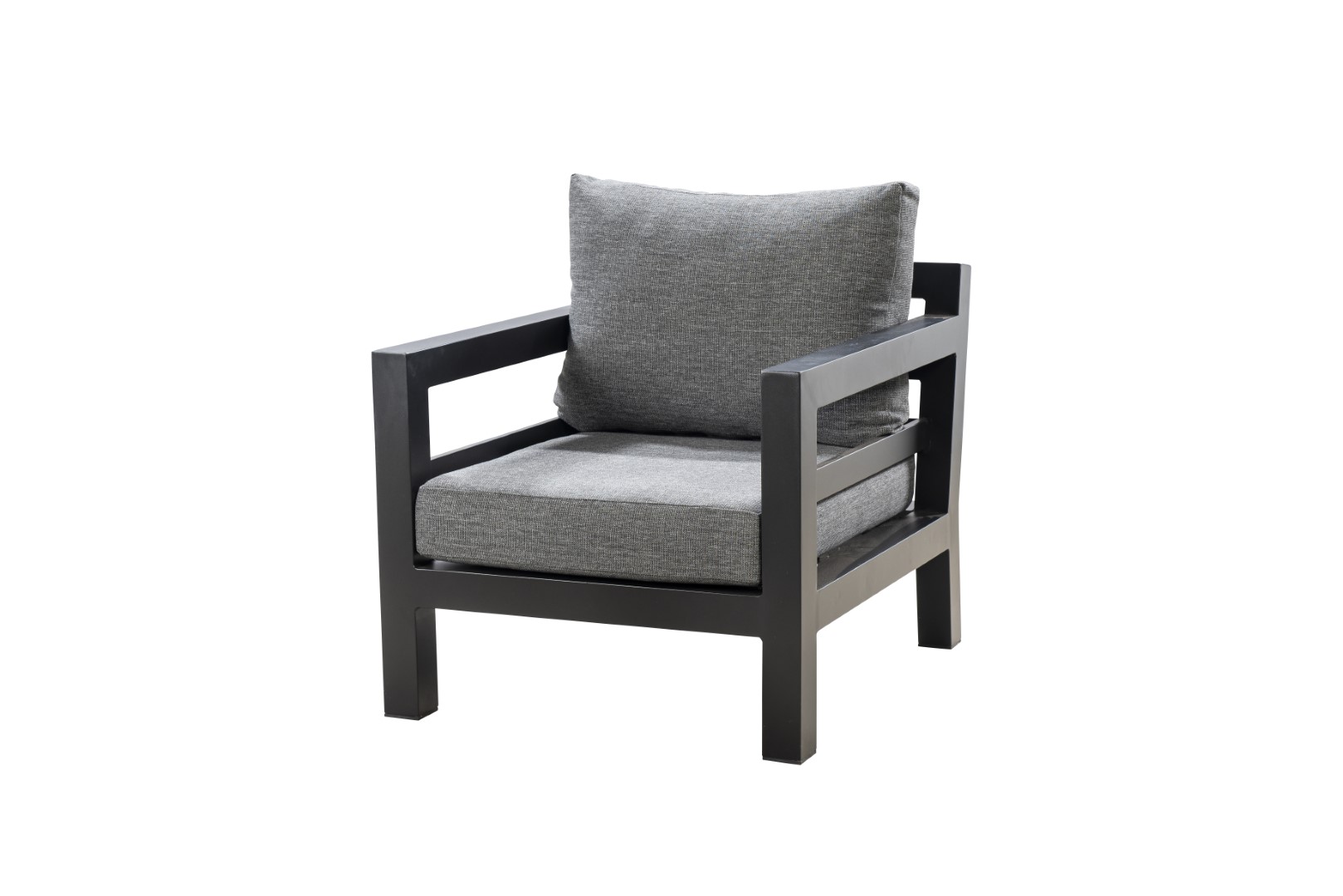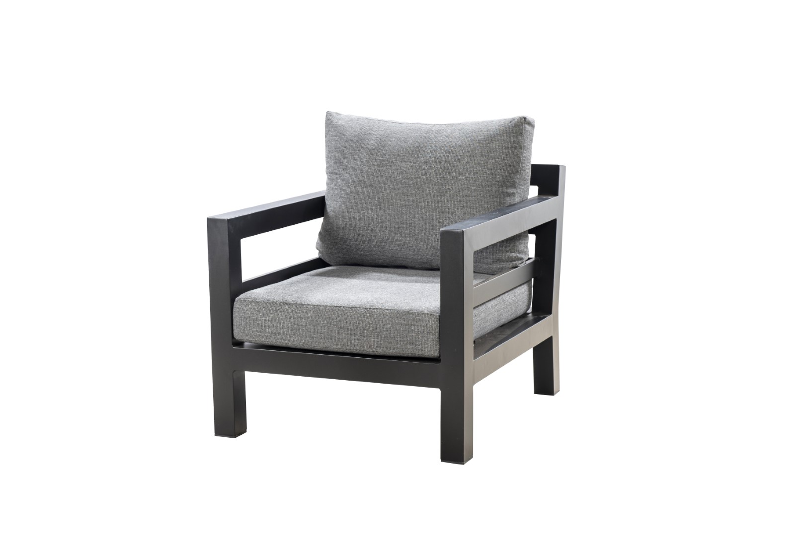 Der Sessel bietet nicht nur ein ästhetisch ansprechendes Design, sondern auch eine durchdachte Konstruktion für den Einsatz im Freien. Sein Gestell besteht aus pulverbeschichtetem Aluminium, das nicht nur robust ist, sondern auch eine lange Lebensdauer gewährleistet und gleichzeitig leicht genug ist, um Flexibilität und einfache Platzierung zu ermöglichen.