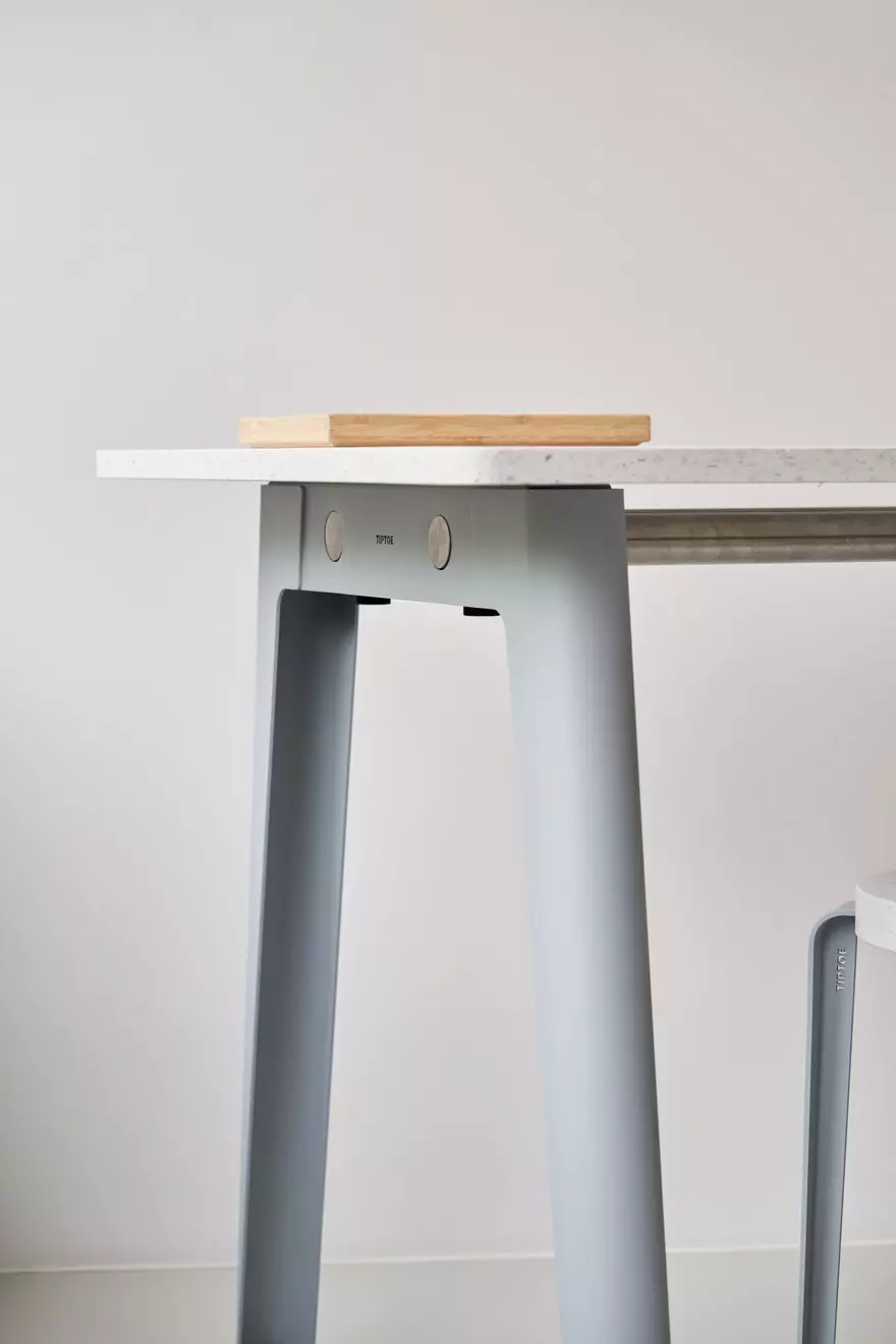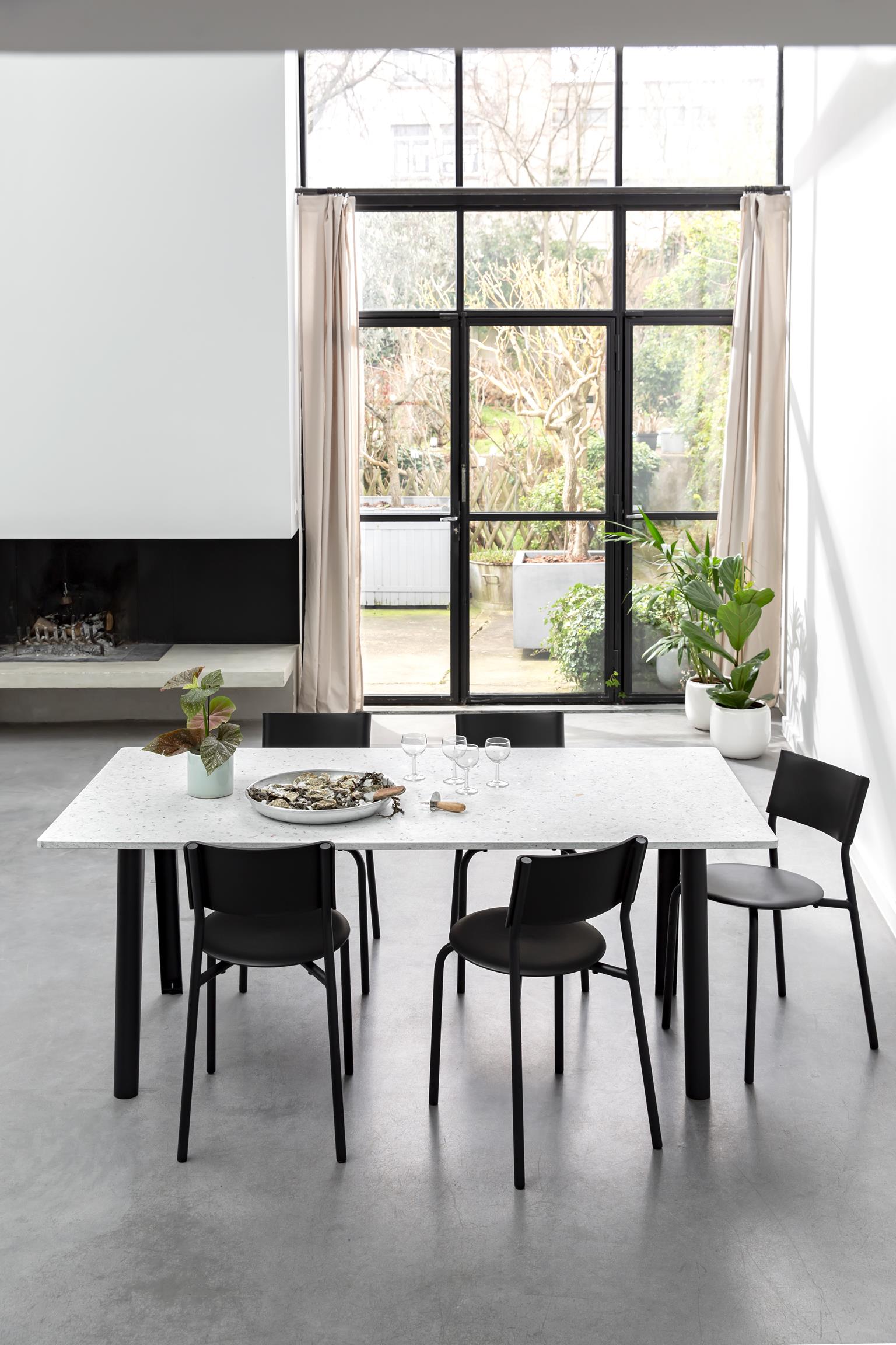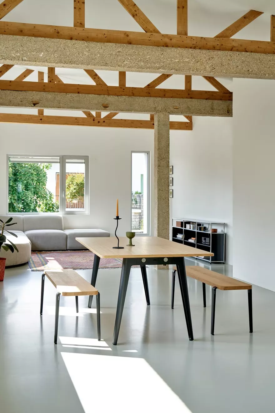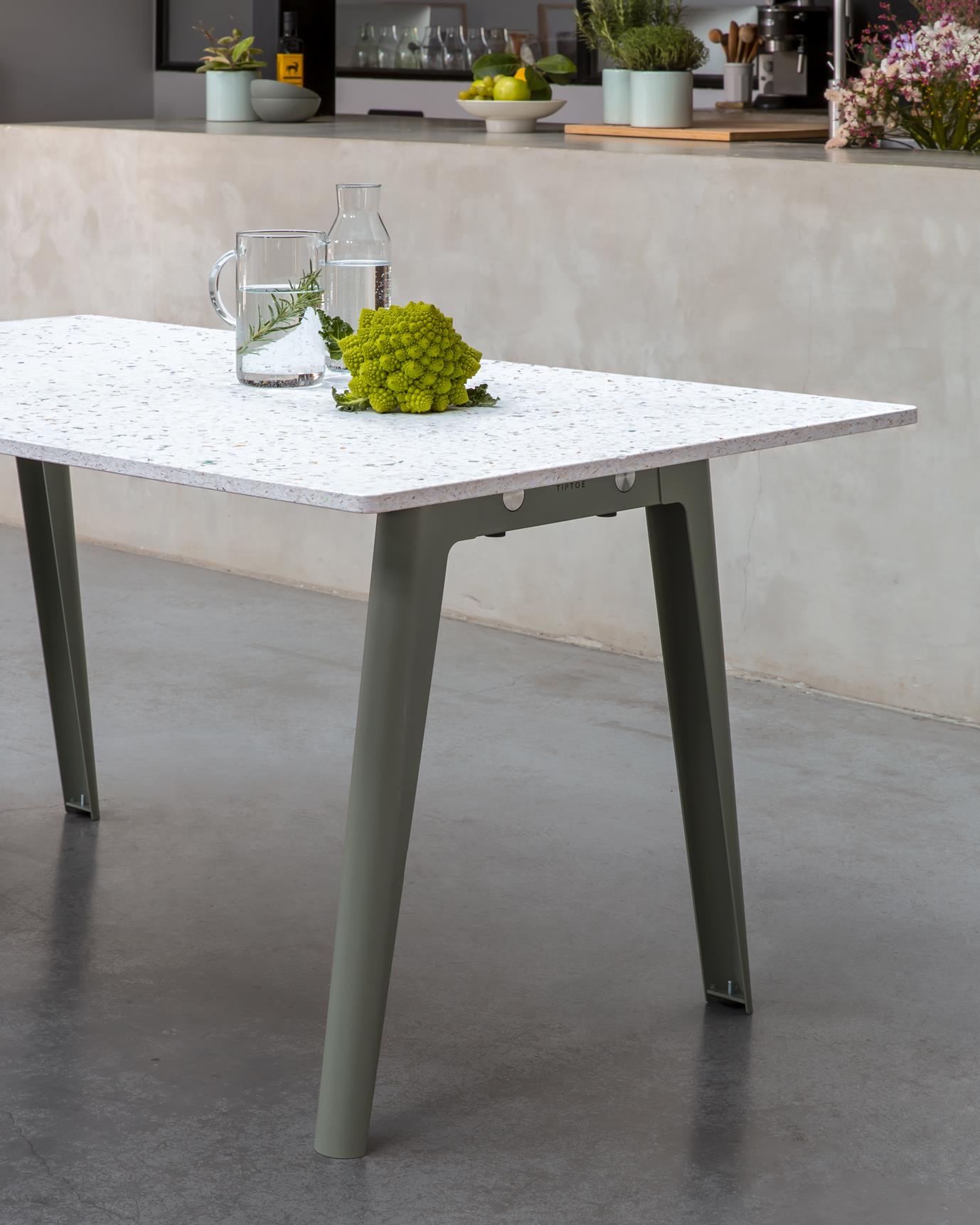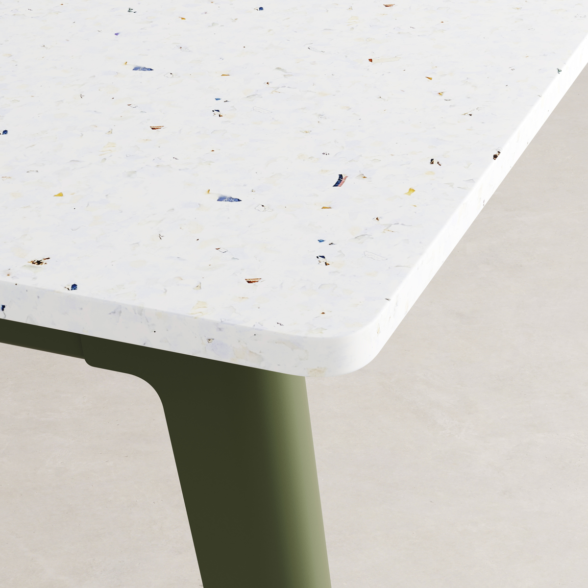 - Tischbeine und Stützbalken sind aus Stahl, einem Material, das sowohl sehr widerstandsfähig als auch endlos recycelbar ist.
