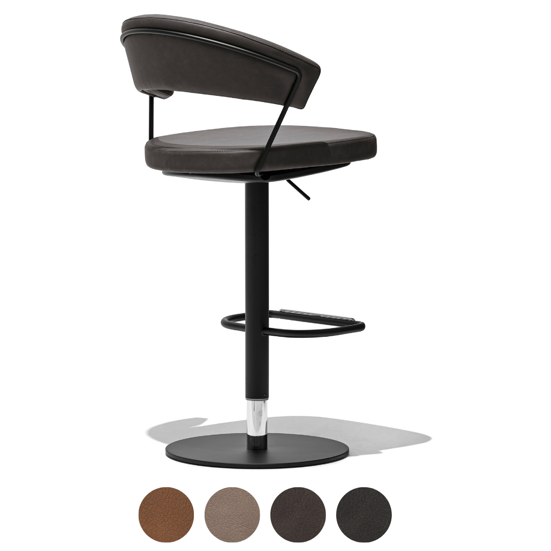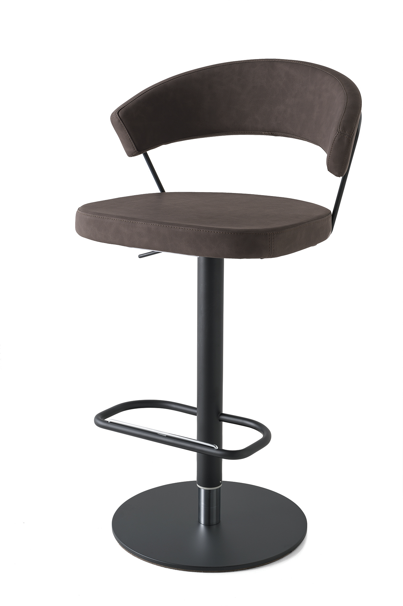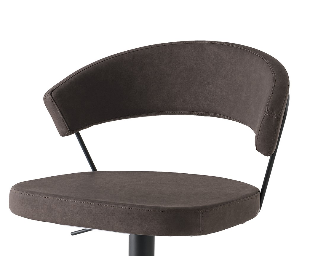 Die einhüllende Rückenlehne und große Sitzfläche dieses Hockers mit Bezug sorgen für optimalen Sitzkomfort. Der Bezug wird aus Vintage, einem lederähnlichen Material, gefertigt. Der Hocker mit verchromter Fußstütze und Gasfeder-Höhenverstellung wird durch den beschwerten runden Fuß gestützt, der maximale Stabilität gewährleistet.