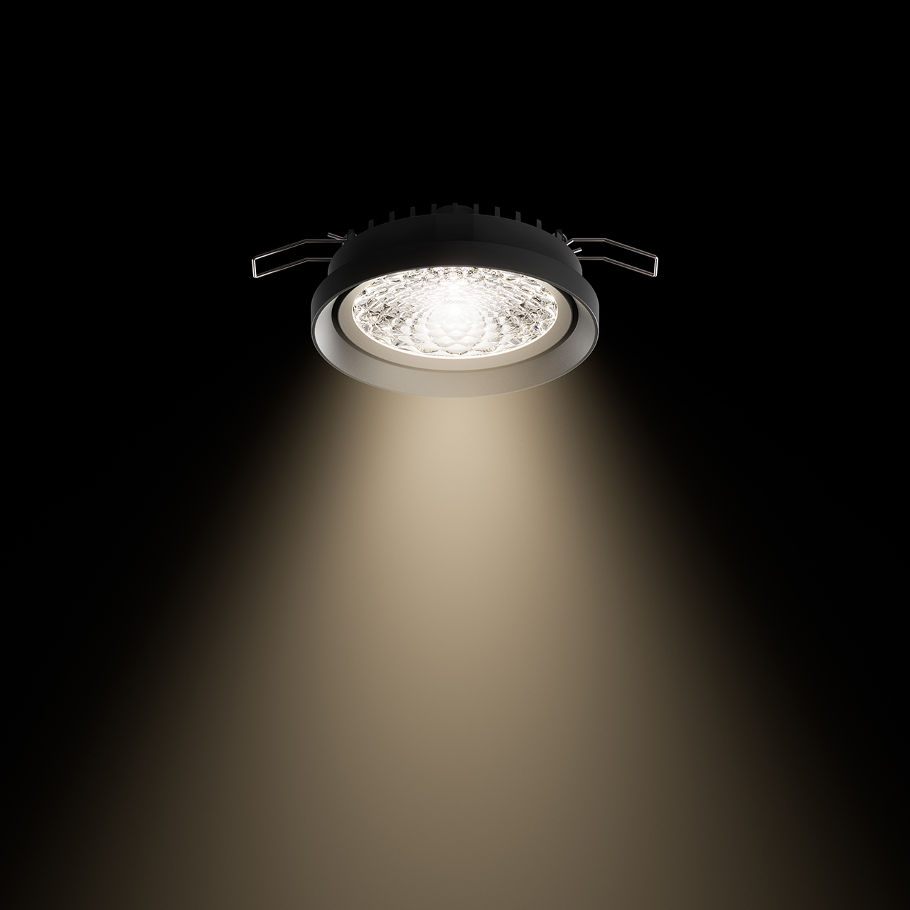 Präzise berechnete Mikrofacetten lenken die Lichtstrahlen, bevor sie austreten, und sorgen für eine homogene, schlierenfreie Lichtverteilung. So schaffen sie ein angenehmes, blendfreies Licht mit natürlichen Schatten.