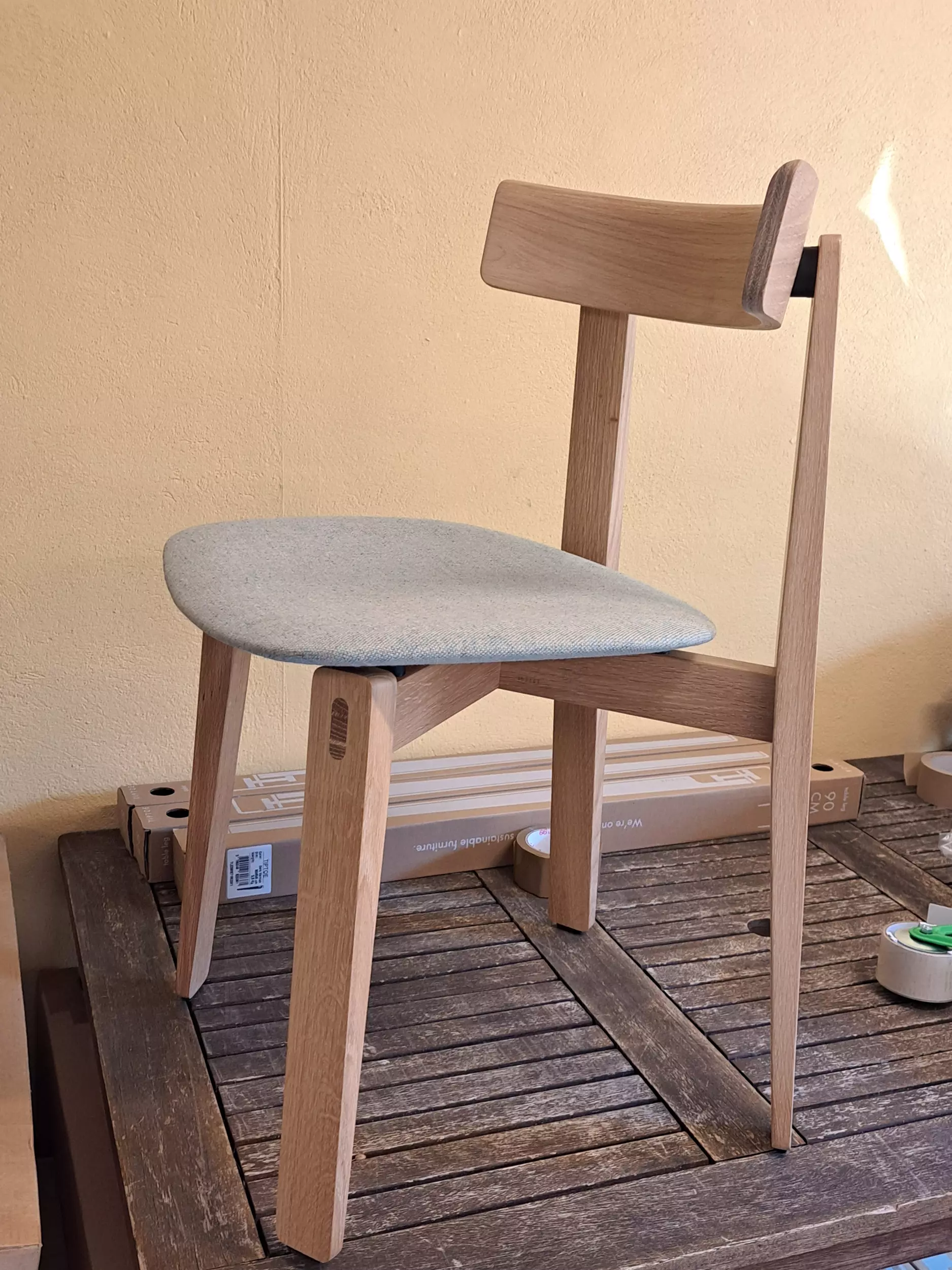 Bei Interesse packen wir gern die anderen Stühle auch noch aus und senden Fotos der anderen Bezugsfarben.
