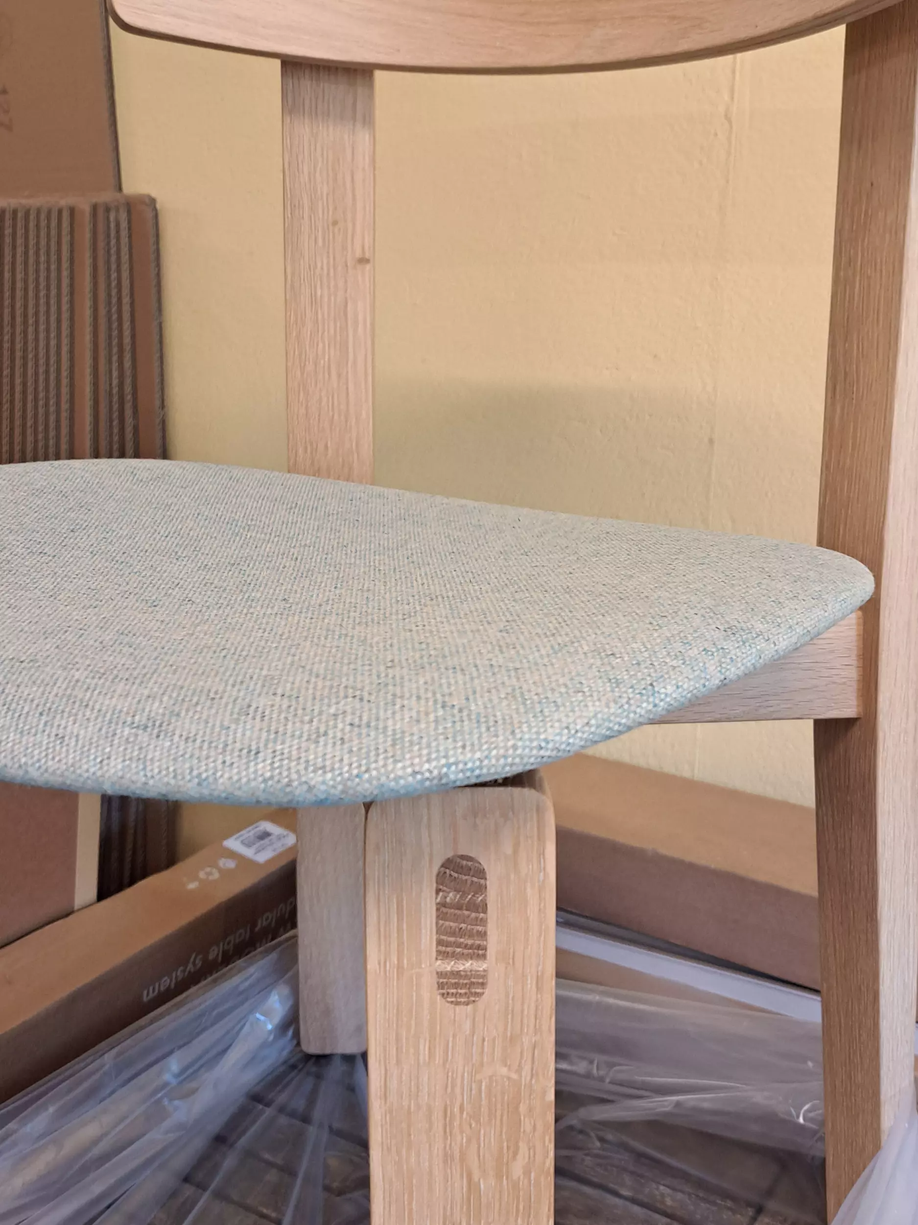 Der (fast) schwebende Sitz ist auch in einem wundervoll, natürlichem Stoff oder in Leder mit feinster Narbung erhältlich: Suche Dir Deinen Favoriten aus, oder kombiniere verschiedene Versionen für einen originären Look.