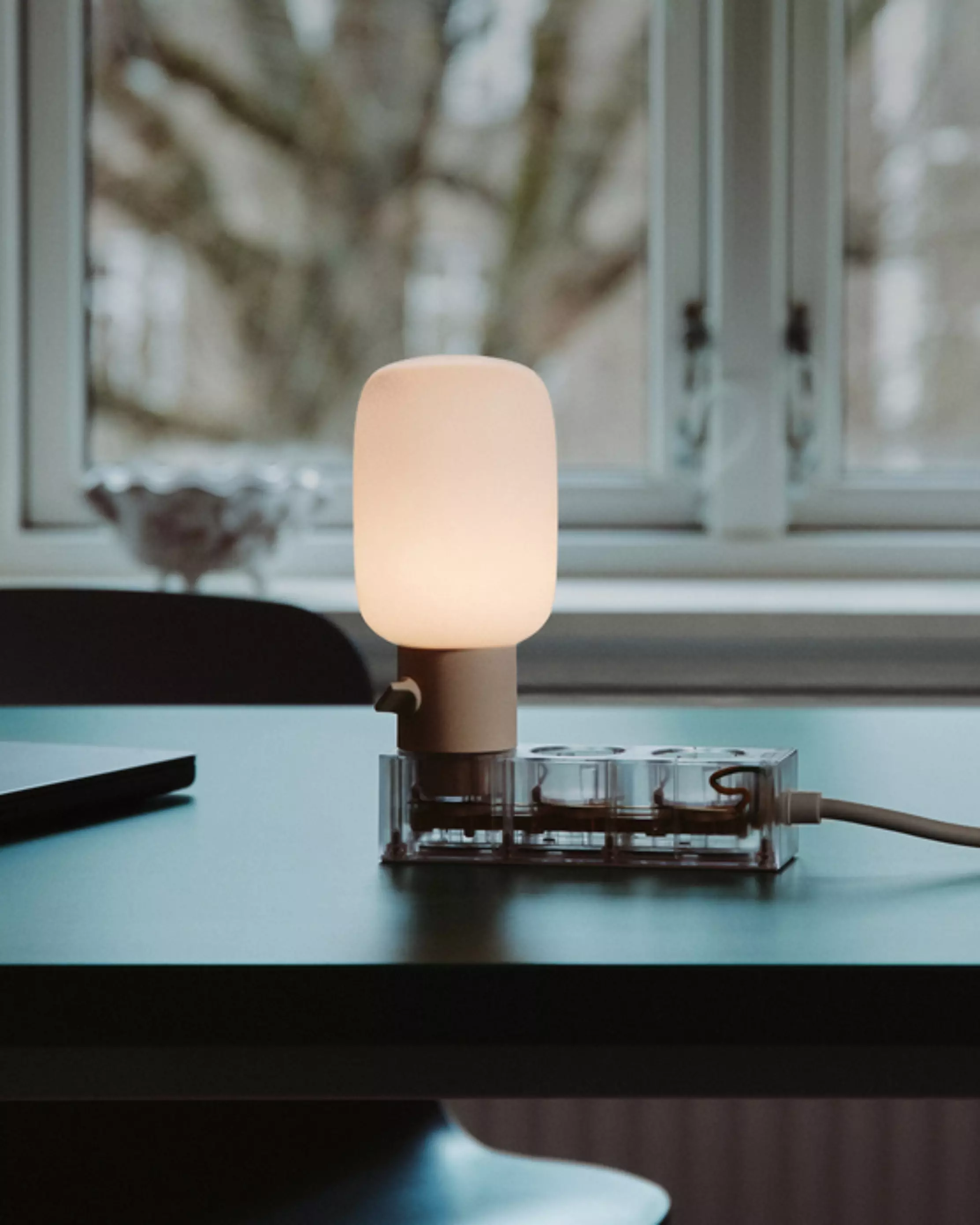 Die Plug-In Lamp verfügt über einen hochwertigen Lichtdimmer, mit dem du das Licht nach Belieben anpassen kannst. Sie funktioniert perfekt zusammen mit der Power Base und ist in zwei Farben erhältlich: Pearl und Mossy Green.