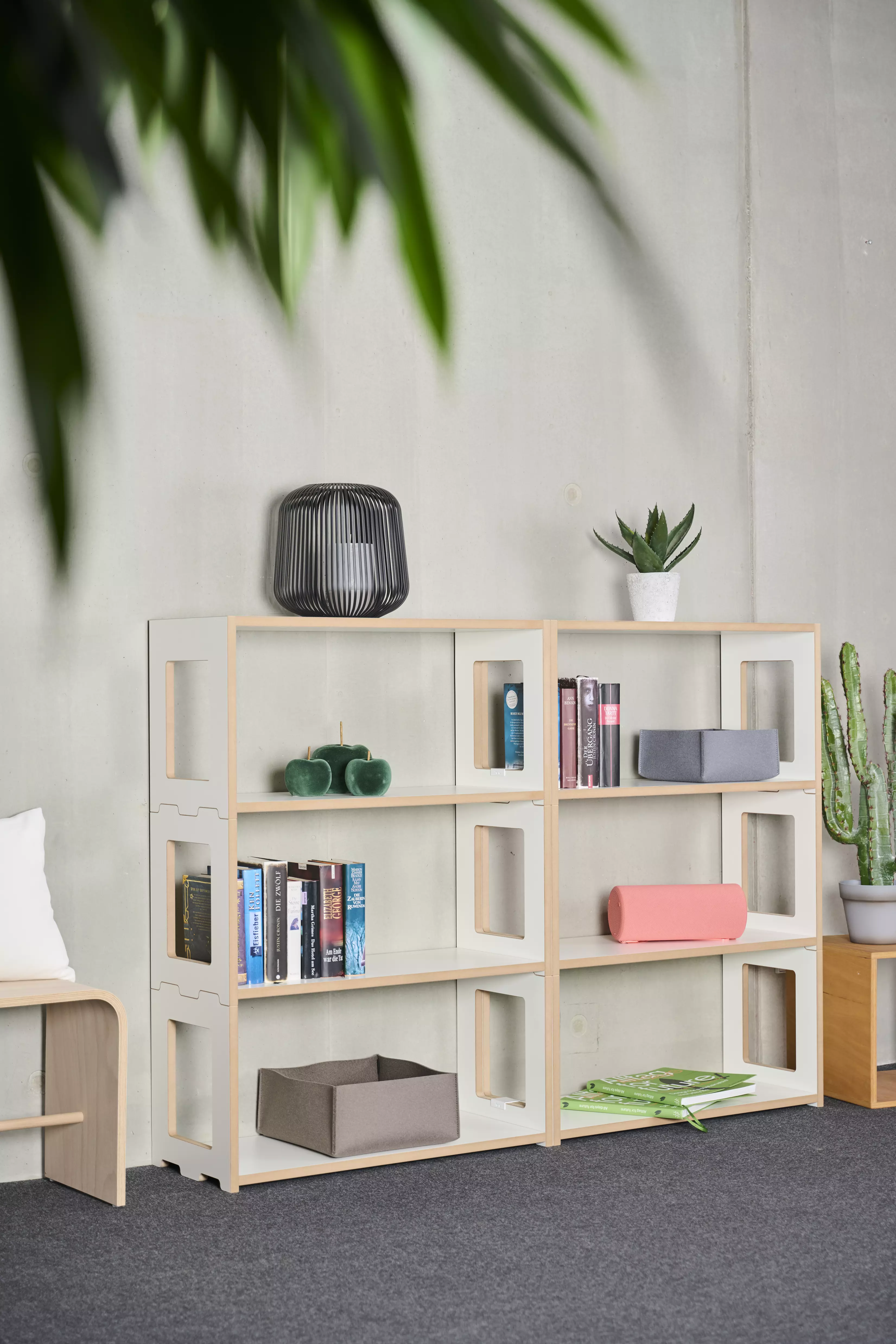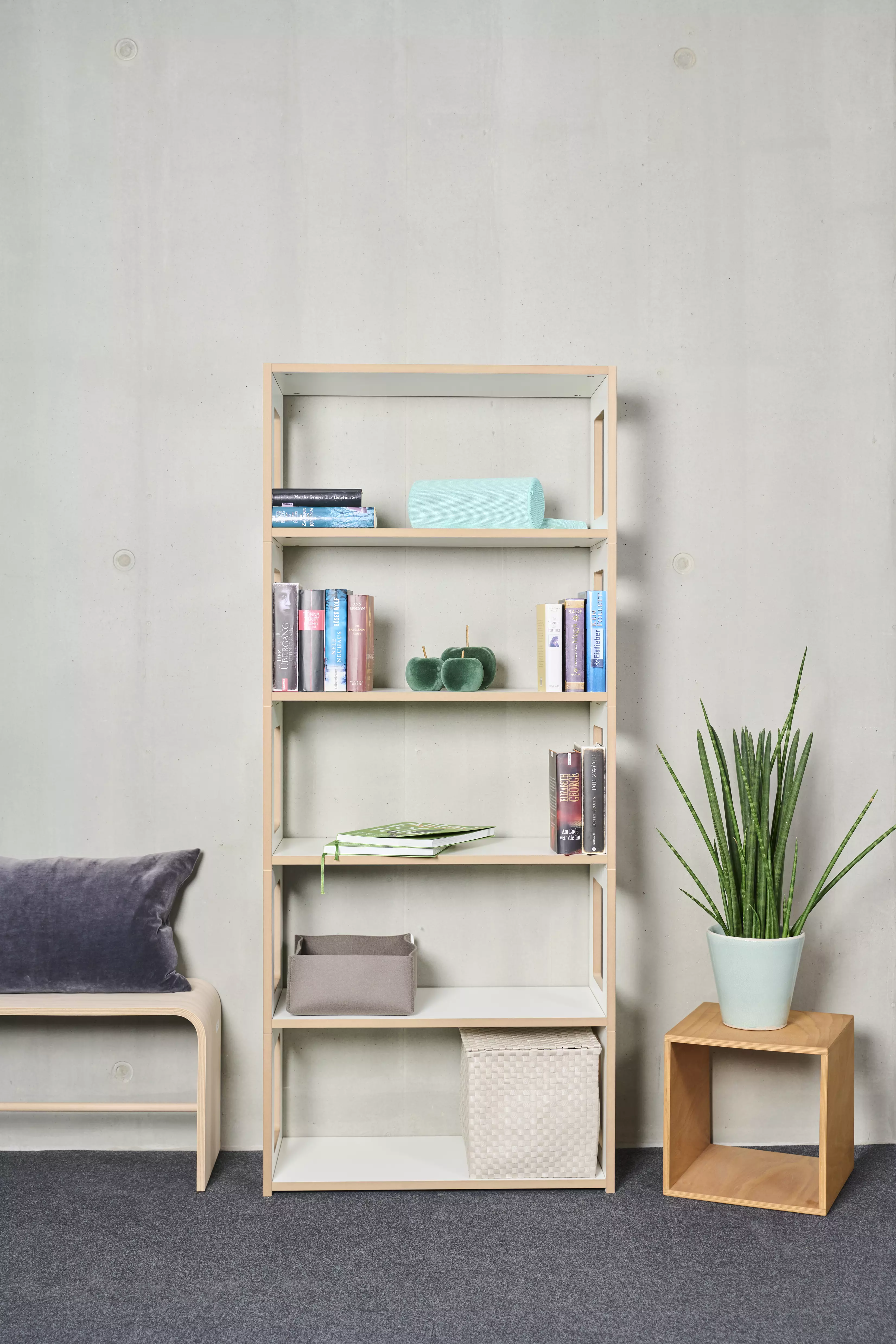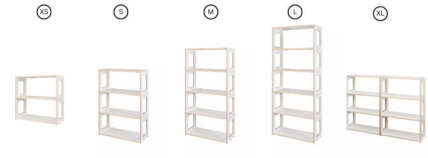 Das Regal besteht aus Grund- und Anbaumodulen, die beliebig kombiniert werden können.