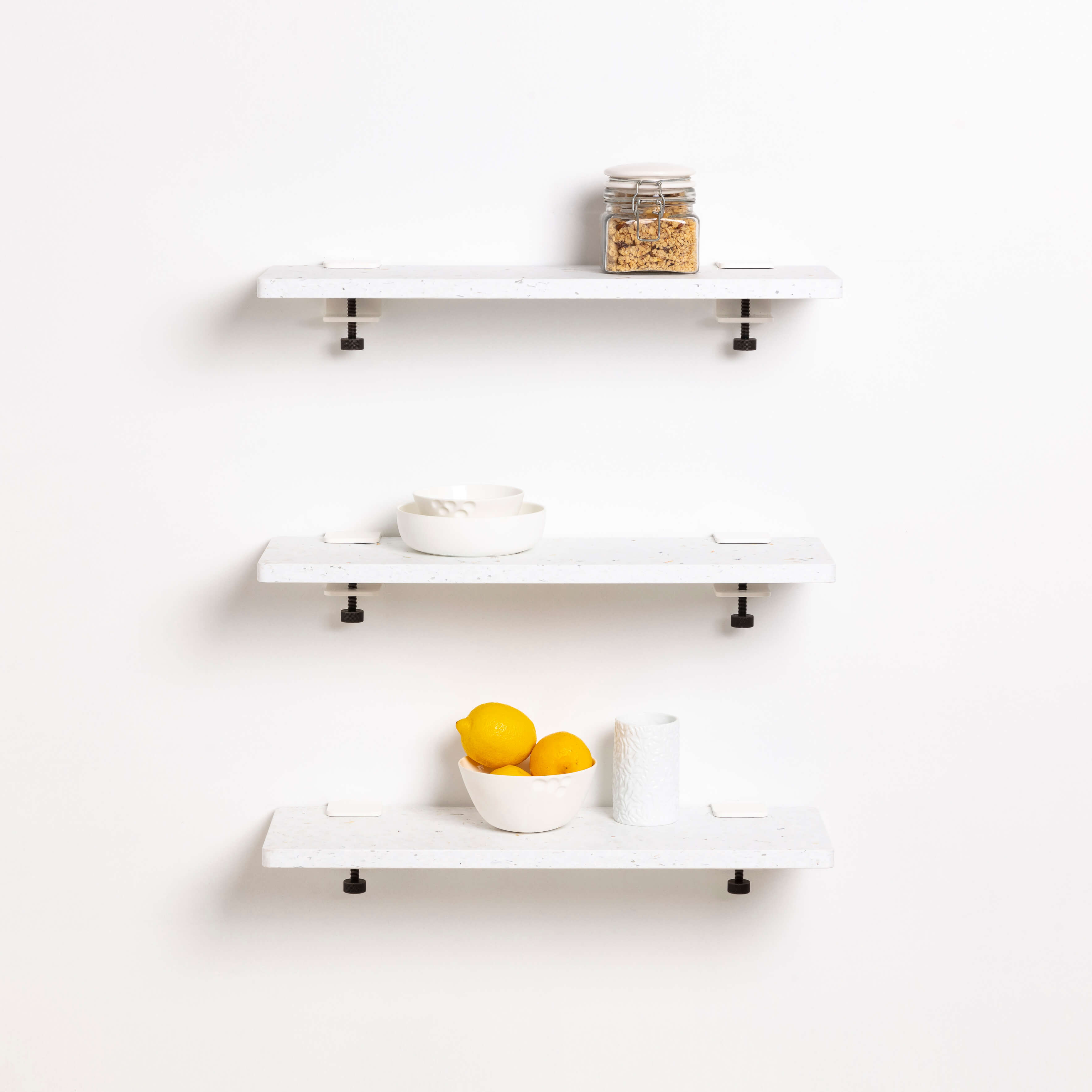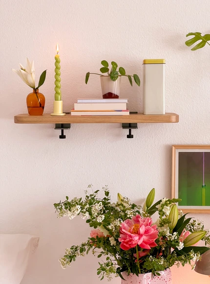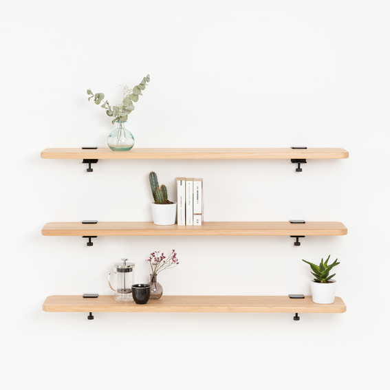 Kombiniere die Wandhaken aus pulverbeschichtetem Stahl und 3 verschiedene Regalbretter miteinander!