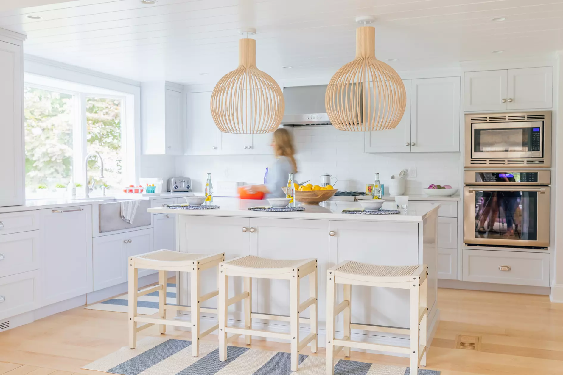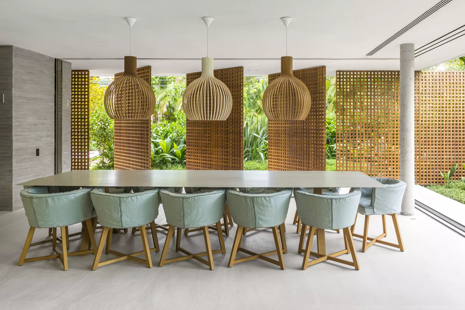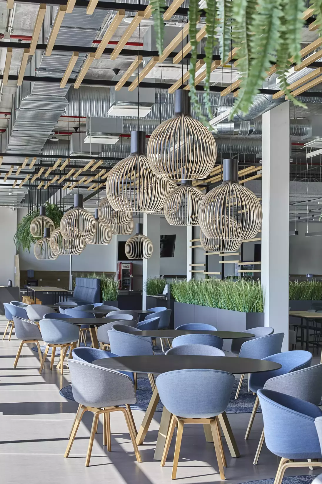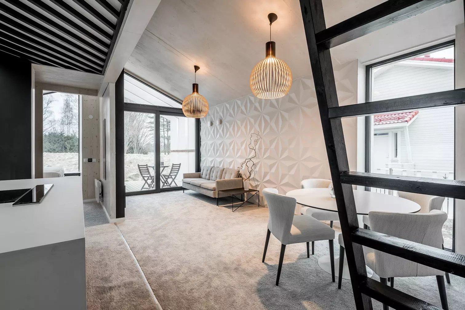 Die Birkenholz Lamellen werden um Ringe aus Flugzeugsperrholz angeordnet und sorgen für atmosphärisches Licht im Einklang mit der Natur.