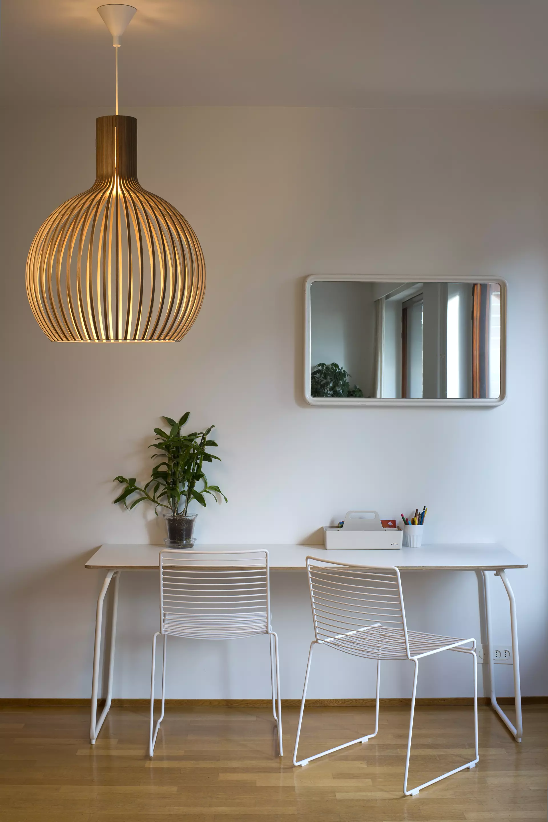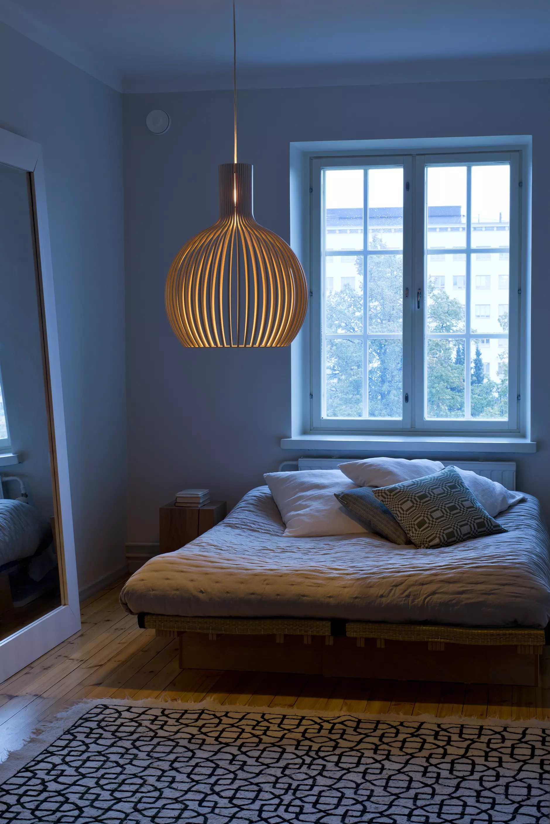 Diese grandiose, luftige Hängeleuchte von Secto Design Oy ist bereits jetzt zum Klassiker geworden. Sie passt überraschend gut in kleine Räume nicht nur wegen ihrer Leichtigkeit.