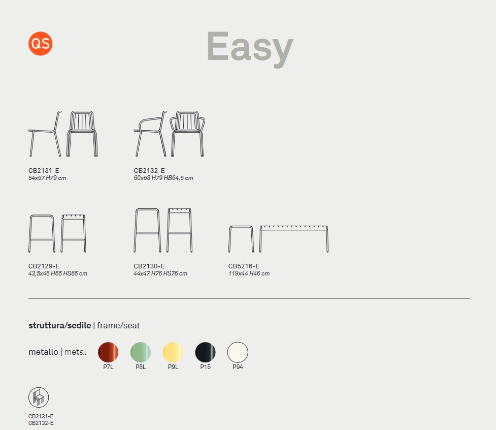 Die Sitzfläche ist aus Metall und passend zum Gestell lackiert.