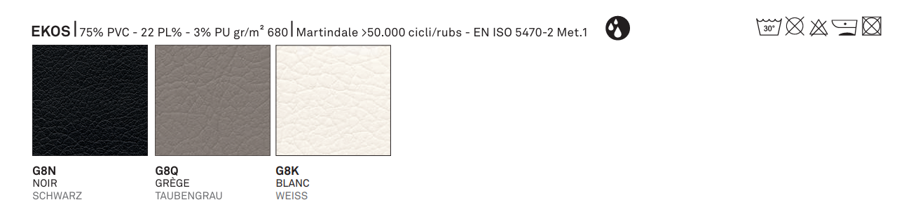 Die Sitzschale wird aus strukturellem Polymerverbundstoff, verstärkt mit Mineralfasern gefertigt und im Co-Injektionsverfahren mit 35% recyceltem Material gepresst.