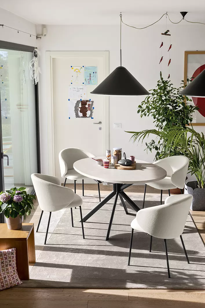 Leicht und funktional bietet der neue Stuhl Cozy Mid aus der Cozy-Kollektion die ideale Lösung für jede Umgebung.Dieser Stuhl eignet sich perfekt für die Positionierung um einen Küchentisch oder in einem Essbereich mit jungen und farbenfrohen Farbtönen.Er verfügt über eine Metallstruktur, die die Rückenlehne elegant umschließt, während die weich gepolsterte Sitzfläche maximalen Komfort garantiert.Eine perfekte Kombination aus modernem Design und Funktionalität. Wähle aus der großen Auswahl an Stoffen und aus den sieben Farben des Metallgestells deine Lieblingsfarbkombination.DesignConnubia MaterialMetall, matt lackiertin Schwarz, Lava oder HanfBezugsstoff Cros100% PL gr/m2 390 - mit wasserabweisender Oberflächenveredlungin Sand, Taubengrau, Schwarz oder BlauBezugsstoff Rain100% PL gr/m² 490 Martindale >100.000 cicli/rubs - EN ISO 12947-2 - mit wasserabweisender Oberflächenveredlungin Sand, Taubengrau oder Anthrazitgrau MaßeBreite 46,5 cm Tiefe 57,5 cm Höhe 82,5 cm Sitzhöhe 47 cm Gewicht 7,8 kg