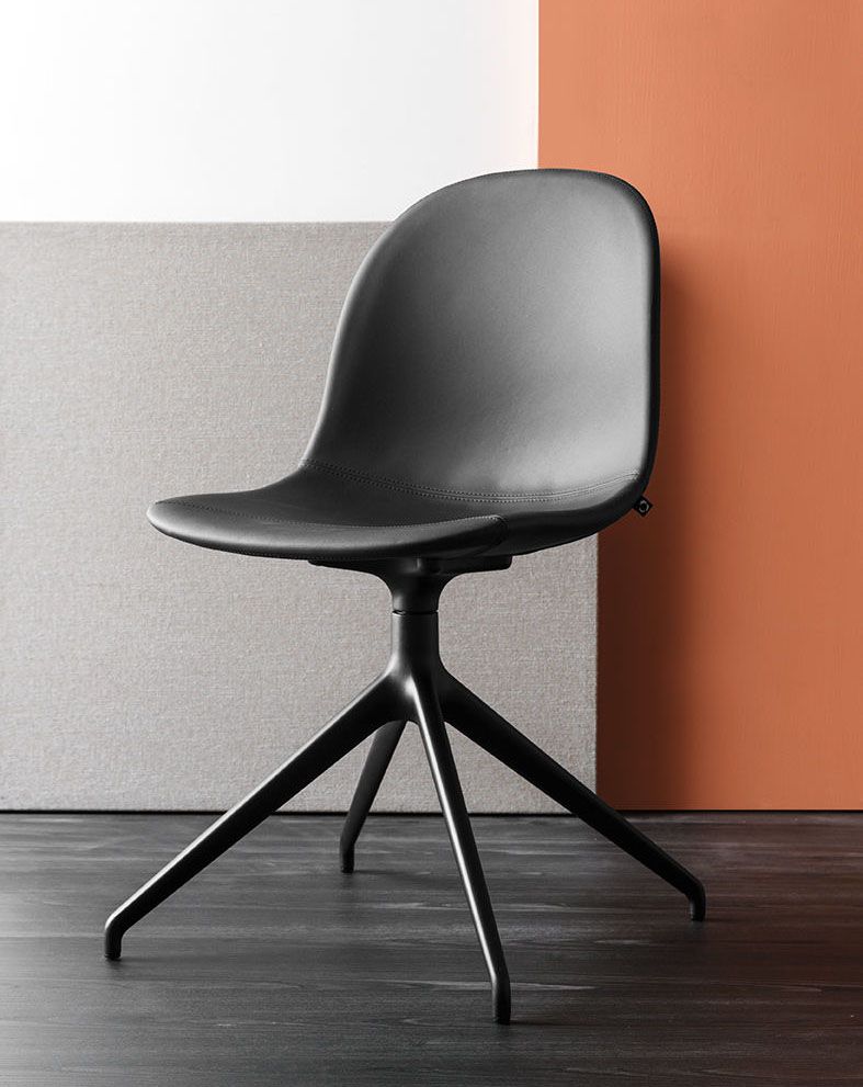 Der Stuhl ACADEMY besitzt eine Sitzschale aus Polypropylen. Die Sitzfläche ist Ausdruck einer Formensuche, die schlichte und geschwungene Linien aufgreift. Ideal für jedes Ambiente und jede Situation.Mit seinem bunten und modernen Design passt der Stuhl Academy genau so gut in den Wohnbereich zu Hause wie in die Lounge oder Bar. Konfigurieren Sie den Stuhl ganz nach Ihren Vorstellungen. DesignConnubia by Calligaris GestellDas 4-Bein-Gestell besteht aus Rundmetall und wird farblich passend zur Sitzschalematt lackiert, verchromt oder in Messing gefertigt.Metall verchromt P77die Verchromung ist ein Galvanisierungsvorgang, der eine Schicht von Chrommetall auf die jeweilige Metallstruktur fixiert. Die Verchromung ist glänzend, spiegelartig und garantiert eine hohe Widerstandsfähigkeit.Metall matt lackiertist eine matte Lackierung, welche in zwei Schichten aufgetragen wird.SitzschaleDie Sitzschale ist mit regeneriertem Leder bezogen. Das so genannte regenierte Leder ist ein Agglomerat, welches man durch eine Mischung von mindestens 60% Lederstücken und anderen natürlichen Materialien erhält. Die Oberfläche des so enstandenen Materials wird, nach Pressung und Auswalzung, wie diejenige des Kernleders behandelt. Maße B x T x H x Sitzhöhe | Gewicht4-Fuß: 49 x 51 x 84 x 46 cm | 7,3 kgKufen: 54 x 52 x 83 x 46 cm | 9,2 kgGeflecht: 44,5 x 51 x 84 x 46 cm | 8,5 kgDrehkreuz: 49 x 50 x 85 x 46 cm | 9,8 kgDie Gestellart 4-Fuß ist in allen Farben lieferbar.Die Gestellart  Drehkreuz  ist nur in Schwarz oder Weiß lieferbar.Die Gestellart Kufen ist nur in Schwarz oder Chrom lieferbar.Die Gestellart Geflecht ist in ausgewählten Farben lieferbar. (Rot, Schwarz, Grau, Weiß, Hanf, Taubengrau).Das Drehkreuzgestell ist mit 180° oder 360° Drehung erhältlich (preisgleich). Bitte geben Sie die gewünschte Ausführung bei der Bestellung an. Standardmäßig liefern wir 180°.