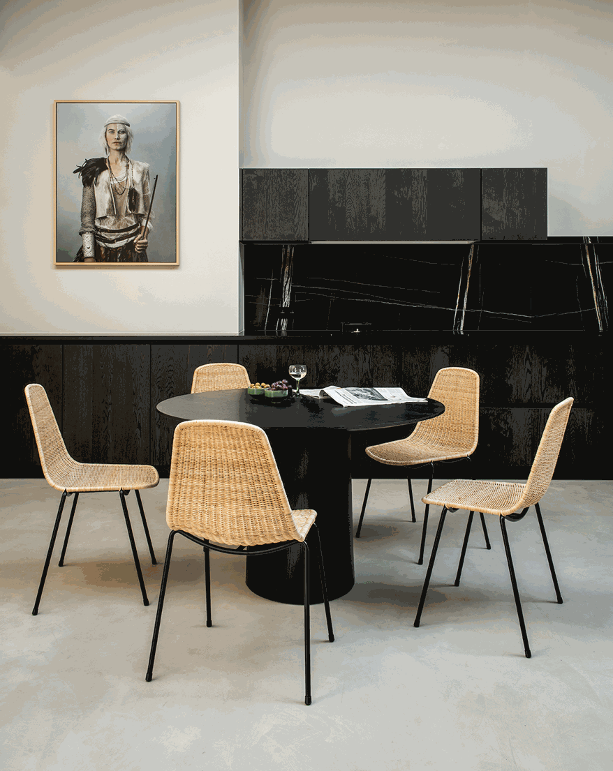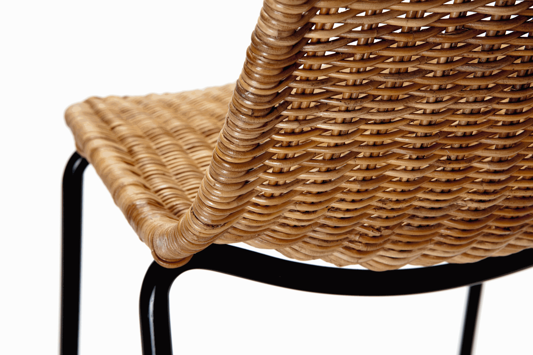 Der stabile, stapelbare Stuhl mit handgewebter Rattanschale ist außergewöhnlich bequem. Die feine Webstruktur aus natürlichen Materialien lässt Ihren Körper an heißen Tagen atmen und entstammt nachhaltiger Bewirtschaftung. Rattan ist eine erneuerbare Ressource, biologisch abbaubar und hinterlässt einen geringen ökologischen Fußabdruck. Das mit einer äußeren Schutzhaut verarbeitete Rattan von "Feelgood Designs" ist eines der belastbarsten verfügbaren Webmaterialien natürlichen Ursprungs.