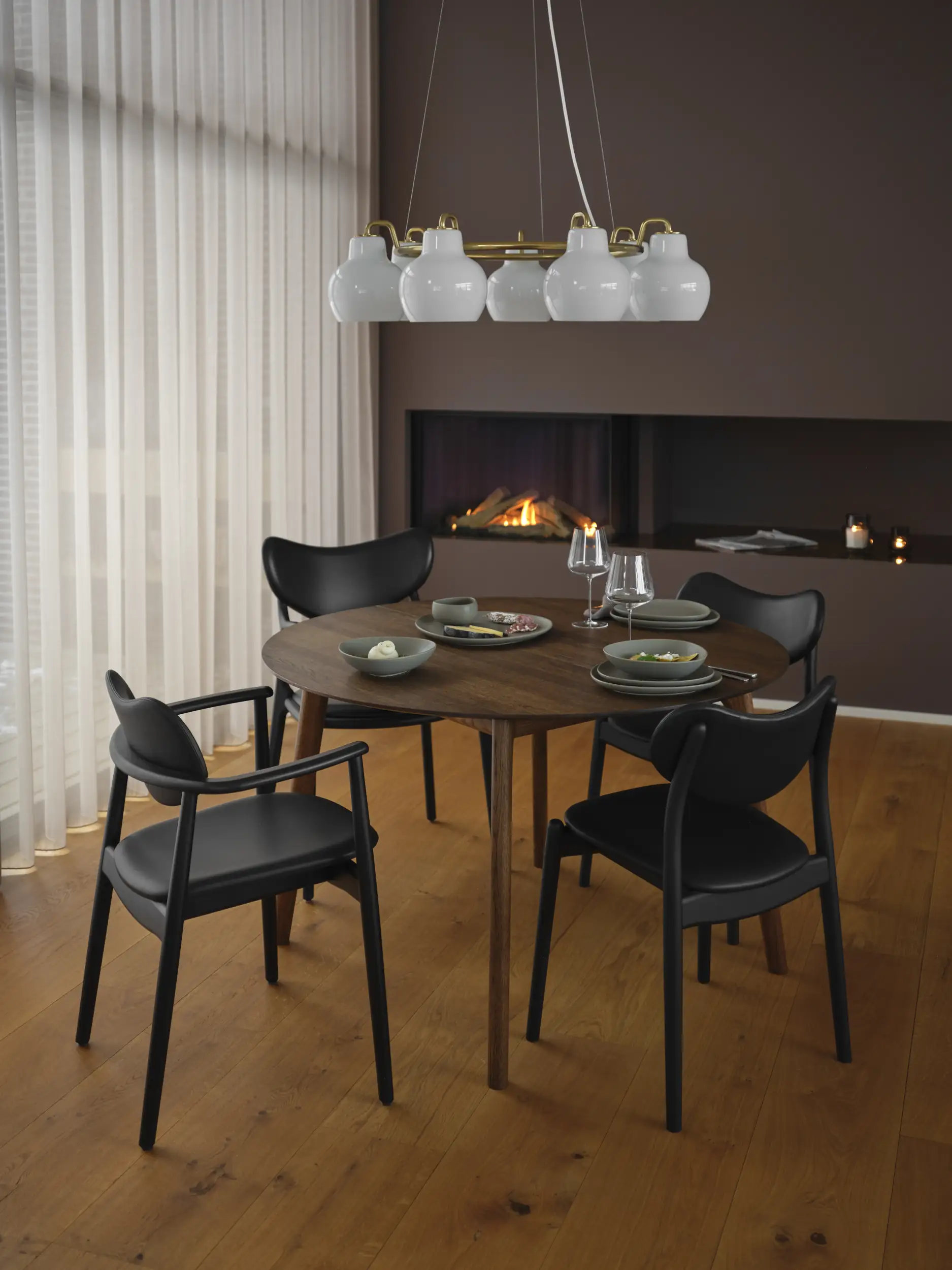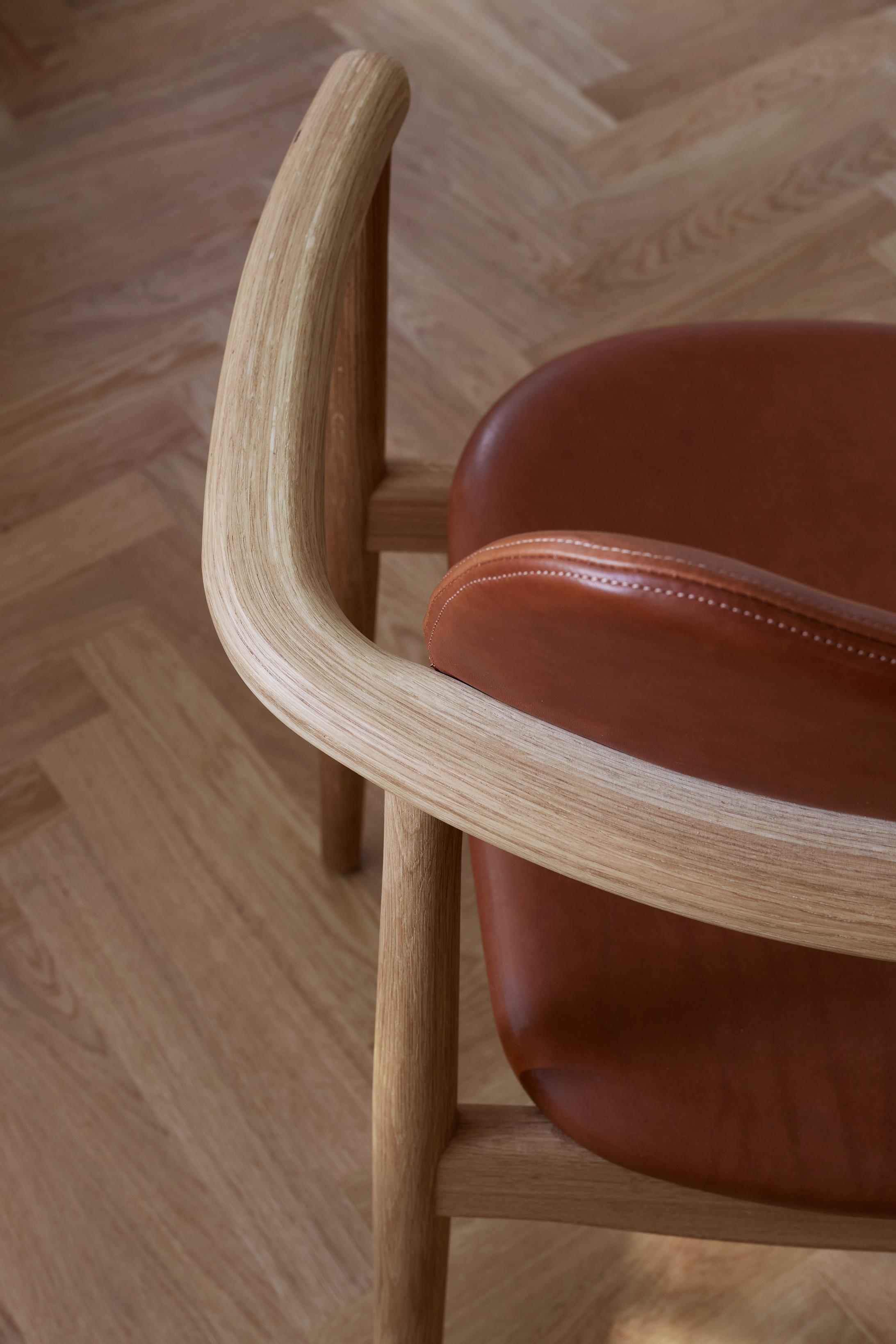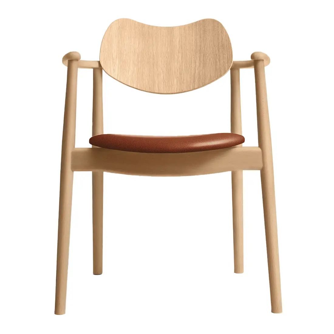 Ob puristisch in Holz oder mit edler Polsterung – wähle aus einer Palette feiner Leder- oder Stoffqualitäten. Die sanft geschwungenen Armlehnen umarmen angenehm, die Rückenlehne bietet ergonomisch abgestützten Sitzkomfort – perfekt für lange Abende oder produktives Arbeiten.