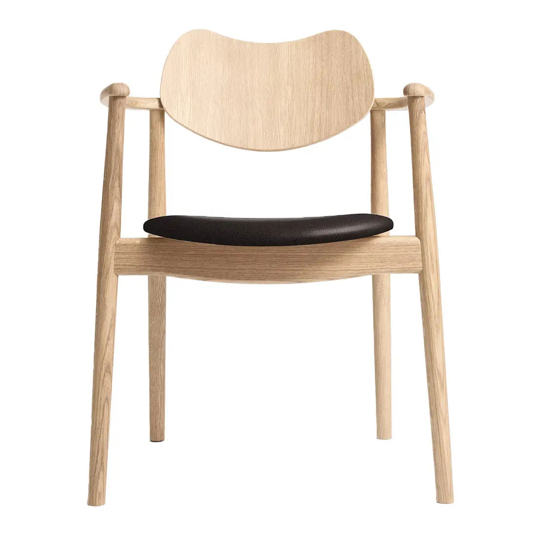 Ob puristisch in Holz oder mit edler Polsterung – wähle aus einer Palette feiner Leder- oder Stoffqualitäten. Die sanft geschwungenen Armlehnen umarmen angenehm, die Rückenlehne bietet ergonomisch abgestützten Sitzkomfort – perfekt für lange Abende oder produktives Arbeiten.