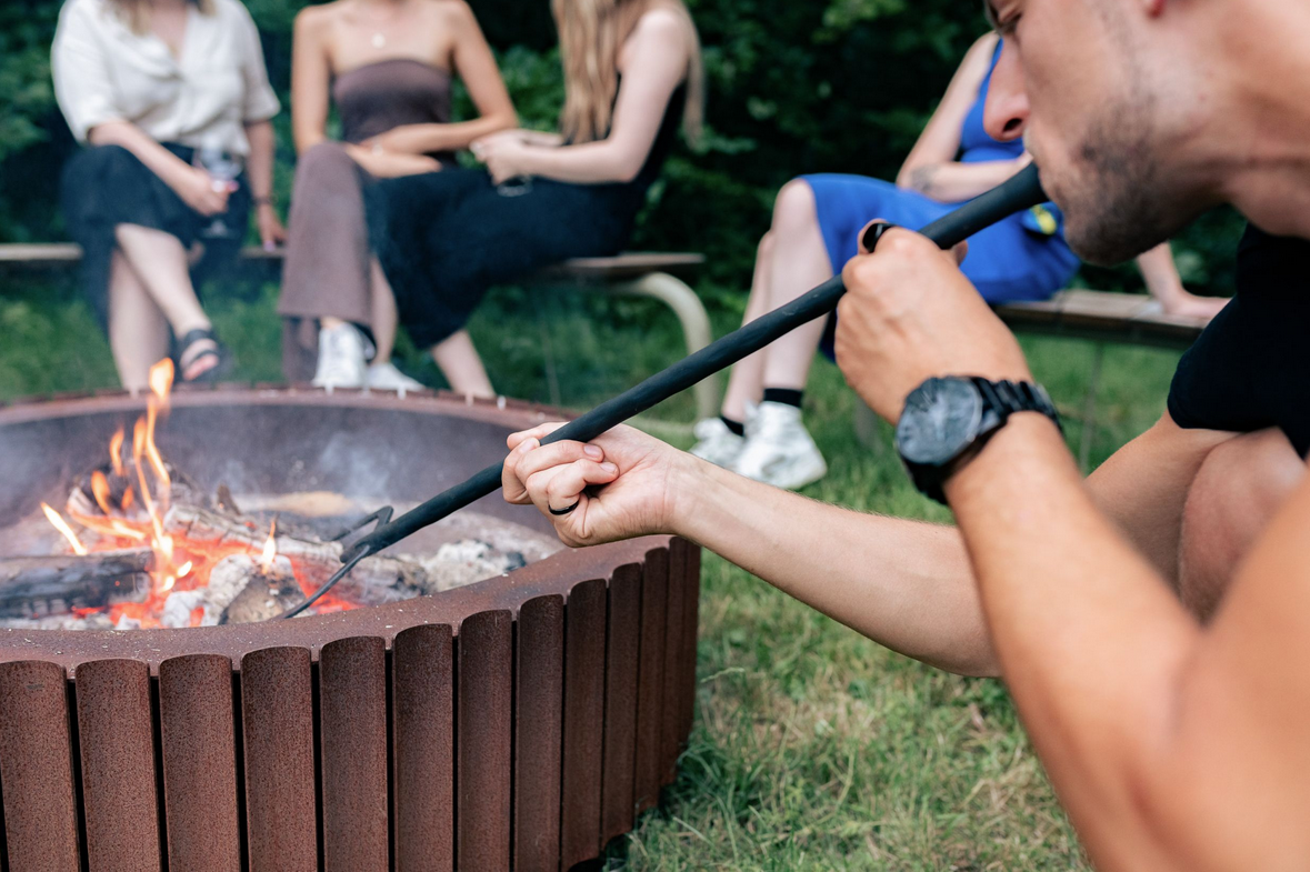 The Blow Poke besteht aus gehärtetem Stahl, der traditionell mit der Hand geschmiedet wird. Die Gabel liegt dank der ergonomischen Form gut in der Hand.