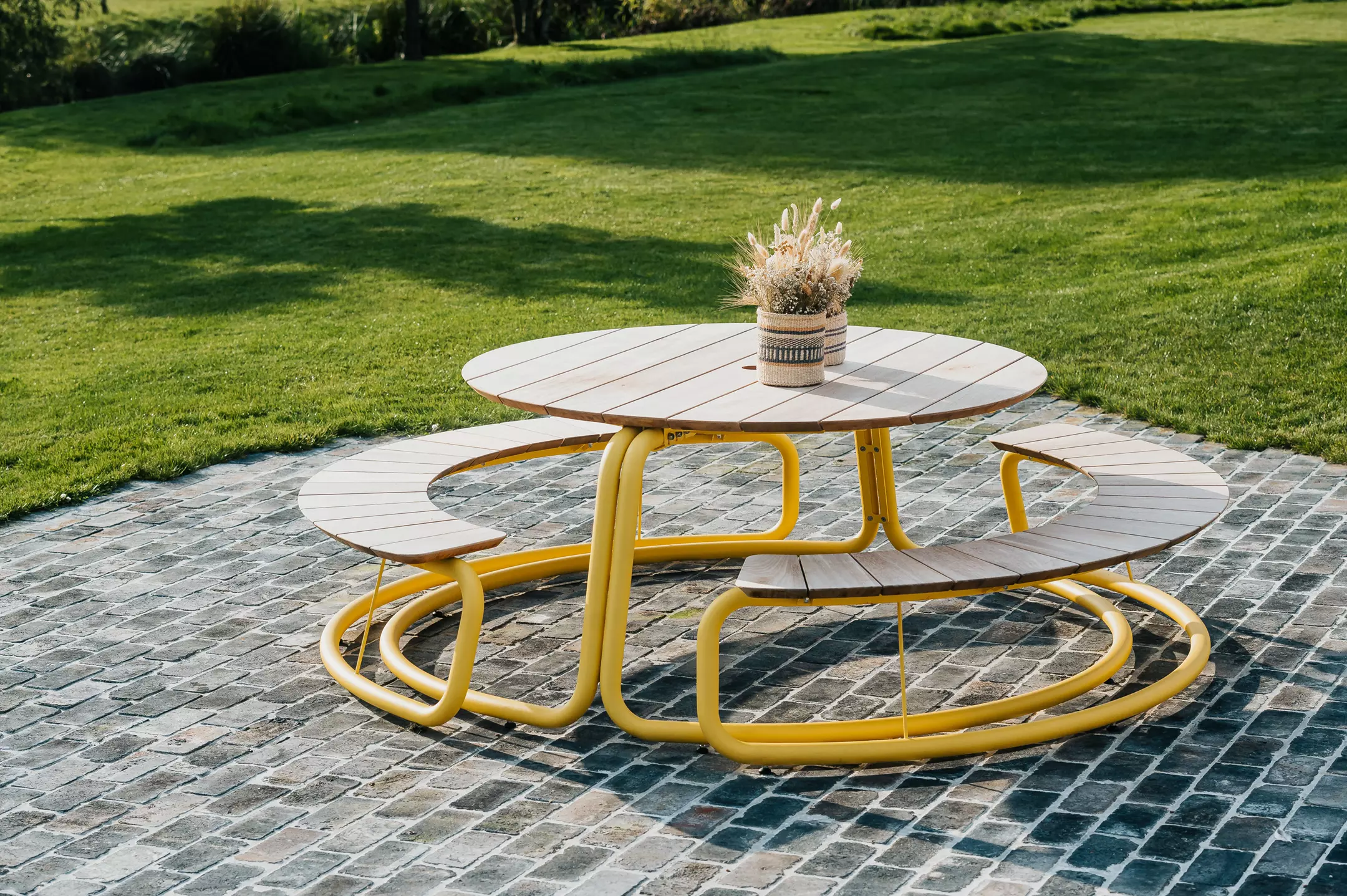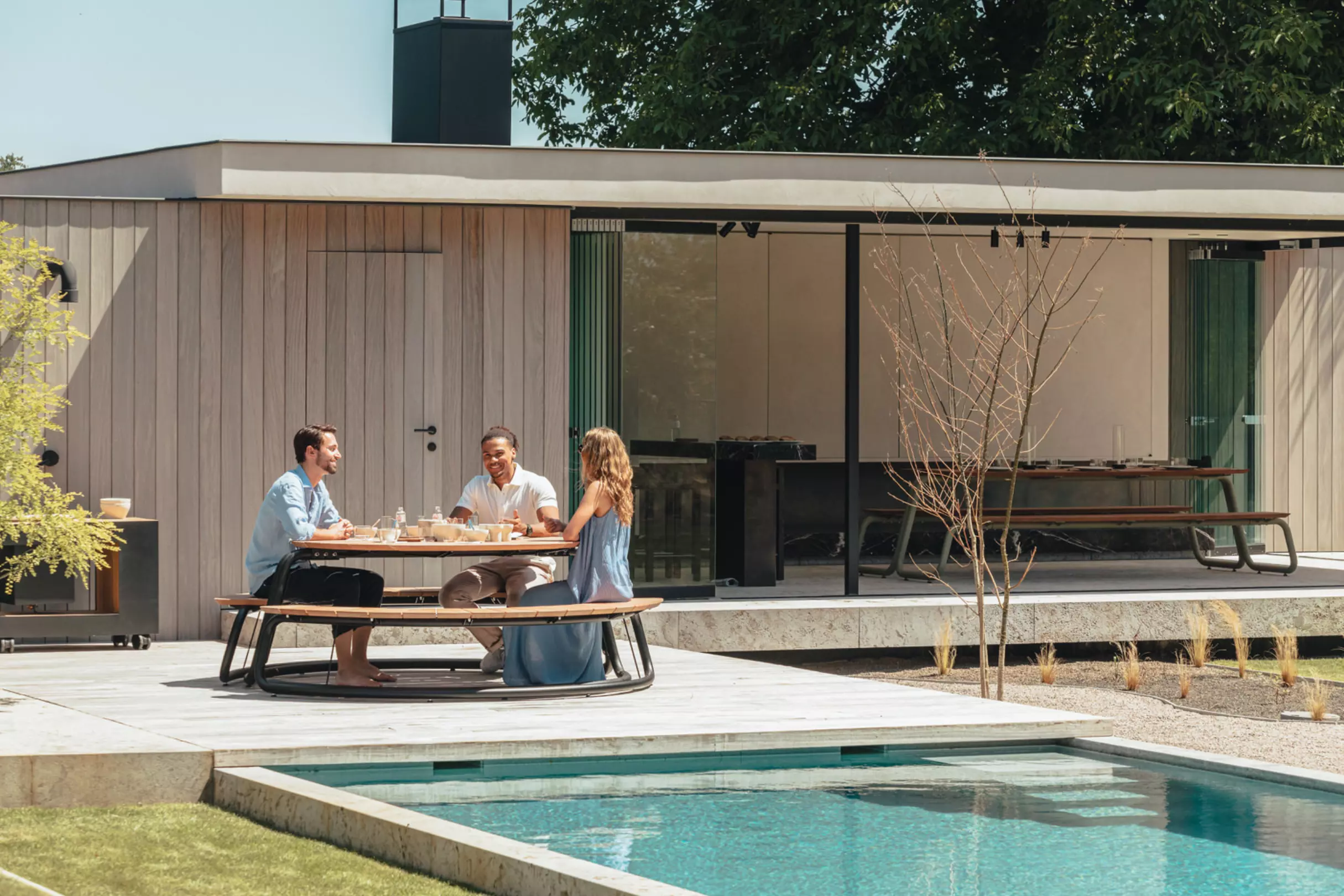 Dieser runde Tisch bringt Menschen sprichwörtlich – und damit auch im übertragenen Sinn – näher zusammen. Jahrelange Gemütlichkeit ist garantiert.