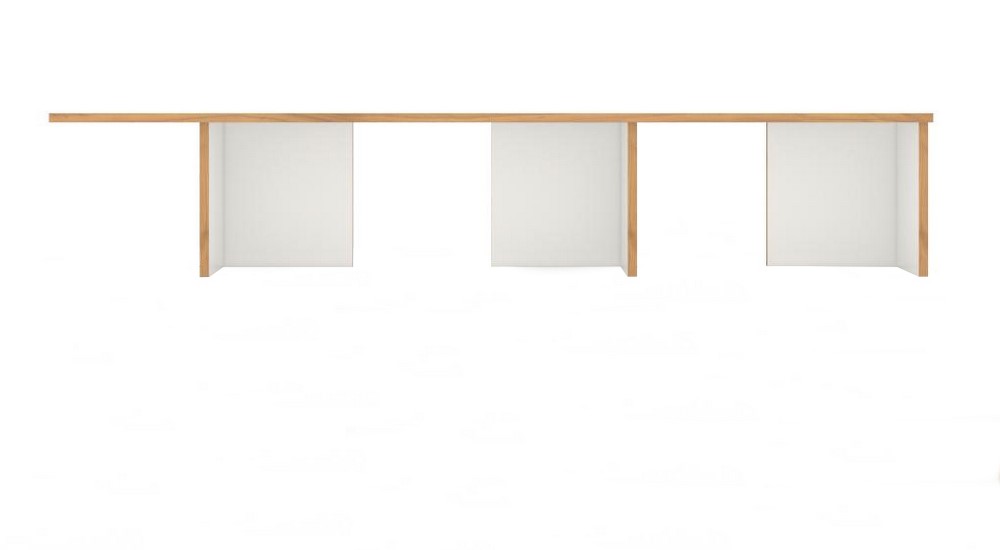 stell - ein freistehendes, horizontal und vertikal beliebig erweiterbares Regalsystem. Die Grundelemente Regalboden- und Regalwinkel werden ohne weitere Befestigungsmittel ineinander gelegt. Aufgrund der einfachen Kombinier- und Erweiterbarkeit kann es vom kleinen freistehenden Sideboard bis zur raumhohen Regalwand genutzt werden.