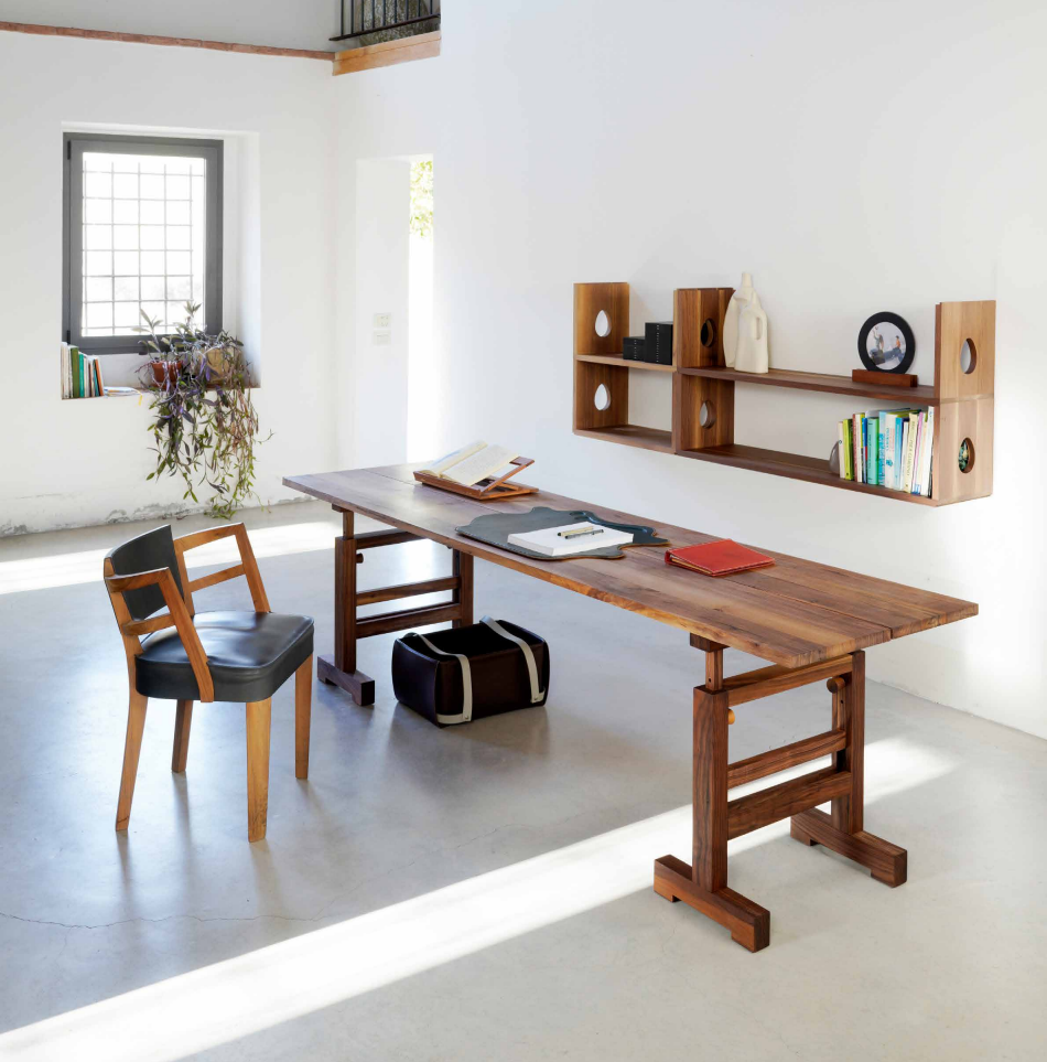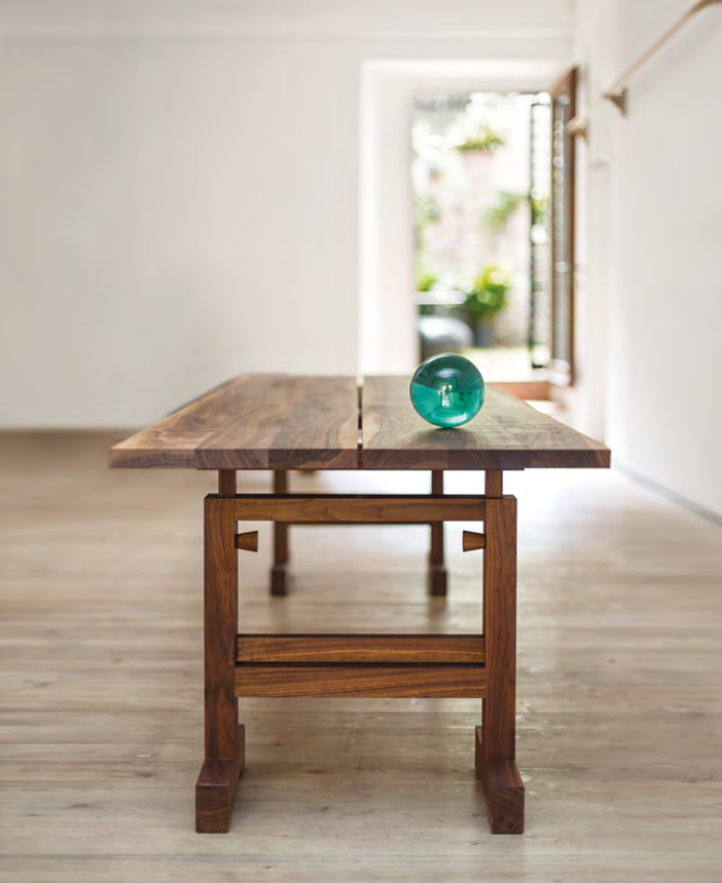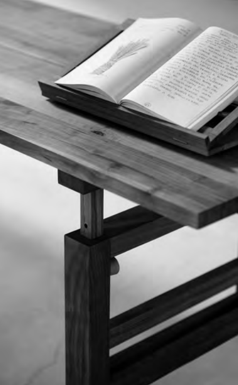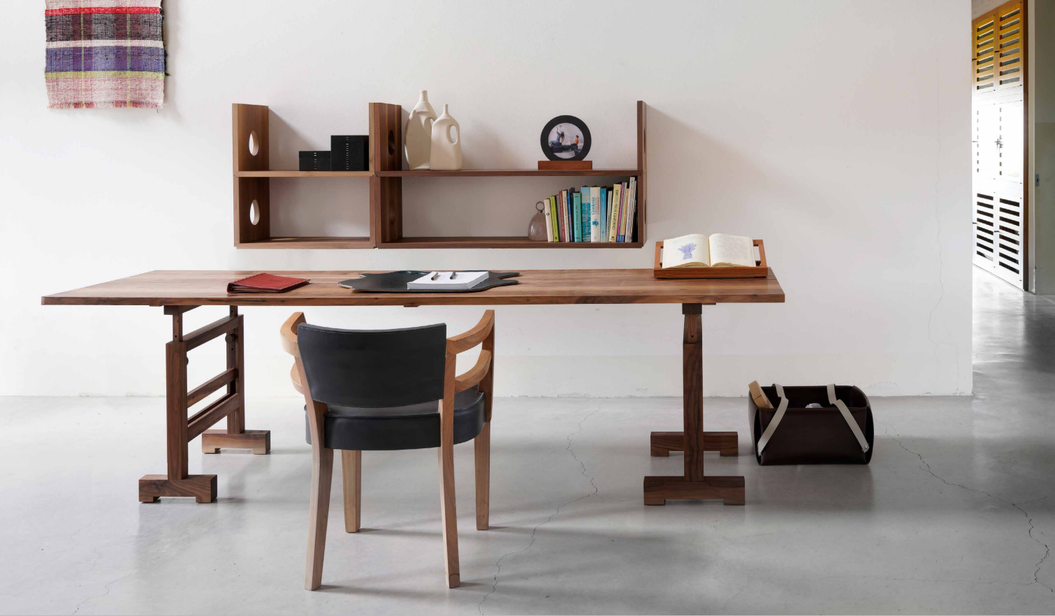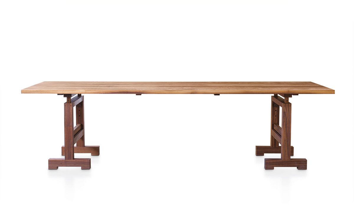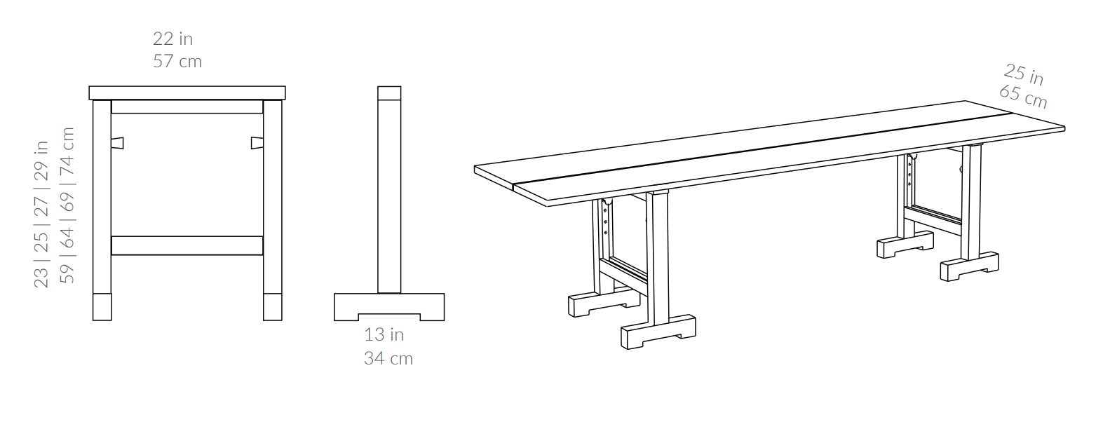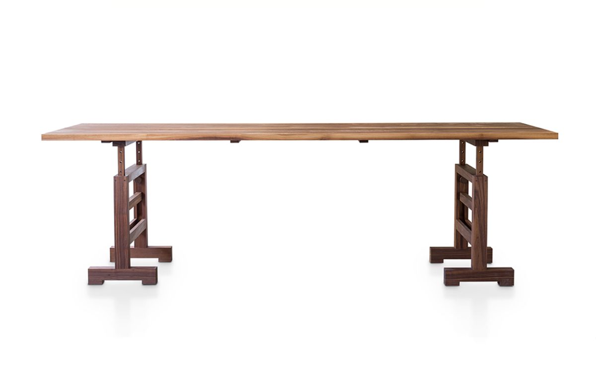 Die höhenverstellbaren Tischböcken können einzeln oder mit maßgefertigten Tischplatten aus Massivholz oder glas bestellt werden.