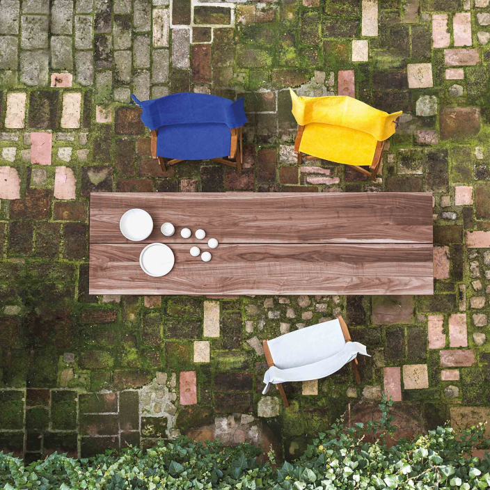 Geeignet für indoor in Nussbaum und outdoor in massiv Iroko