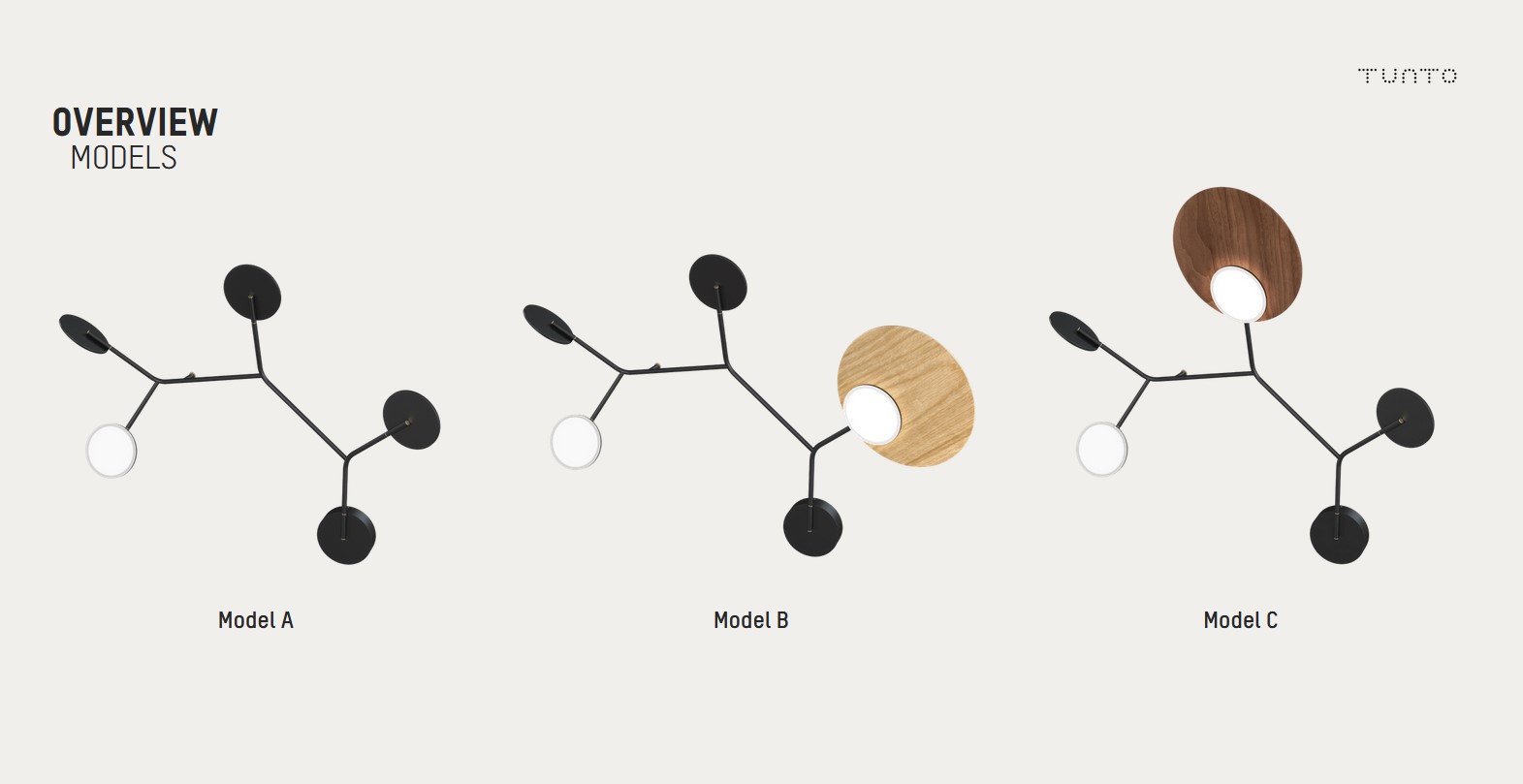 Ballon umfasst eine ganz neue und aufregende Leuchtenfamilie aus dem Hause Tunto. Hier trifft eine organisch geformte Designsprache auf finnische Handarbeit, welche mit dem German Design Award 2019 ausgezeichnet wurde.Die Ballon 5 "A"ist eine Design Wandleuchte mit 4 beweglichen Armen, die um 360° drehbar sind. Jeder Arm verfügt über ein rundes Panel, ausgestattet mit LED Einheiten. Durch die individuell einstellbaren Arme wird diese Design Leuchte allen anspruchsvollen Bedürfnissen nach Beleuchtung und Ästhetik gerecht. Design:Mikko Kärkkäinen Material:4 kleine Panel - Metall Schwarz RAL 9005, Weiß RAL 9003 Rahmen - Metall Schwarz RAL 9005, Weiß RAL 9003 Die Hölzer sind handverlesen und zertifiziert. Das garantiert eine bestmögliche Qualität und trägt zu einer nachhaltigen Forstwirtschaft bei.Das Eichen- und Nussbaumholz stammt aus Nordamerika, das Birkenholz aus Finnland. Holz ist ein lebendiges, organisches Material. Daher können sowohl Musterung als auch Farbgebung variieren. Der Farbton des Holzes kann sich mit der Zeit ebenfalls verändern. Maße:Panels: (⌀ ) 110 mm (H) 722 mm x (W) 589 mm Leuchtmittel:LED nicht austauschbarLeistung: 18 W Spannung: 220 - 240 V 50/ 60 Hz Output: 36 V 500mA Kelvin: 3000 K Lumen: 800 lm CRI: 85 Typ Energieklasse:G Energieversorgung:externer Treiber - nicht dimmbar, Kabellänge 3 m