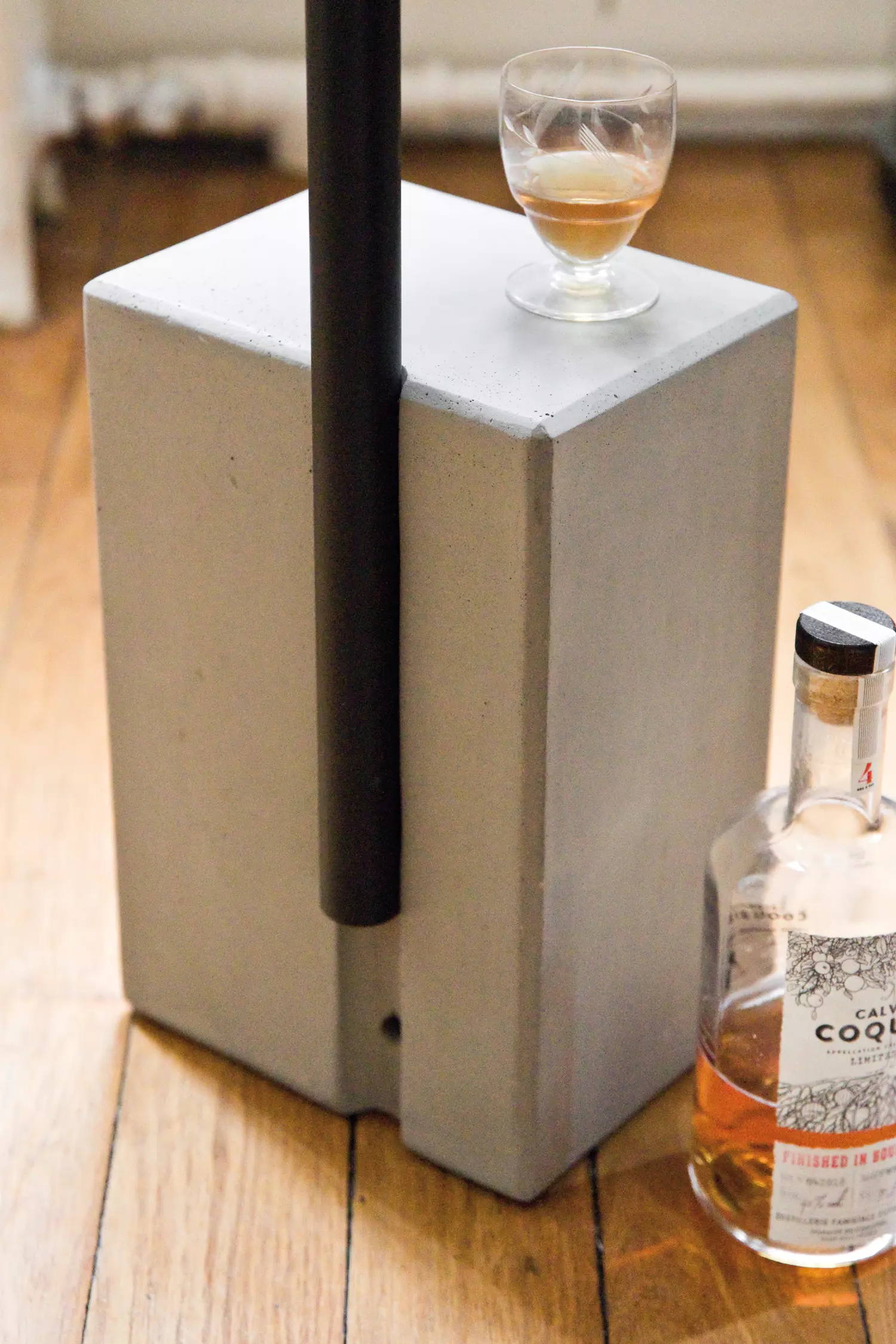 Eine Flasche Imprägniermittel gegen Flecken ist im Lieferumfang dieses Möbels enthalten. Es verhindert signifikant, dass Öl, Fett und Wasser in den Beton eindringen.