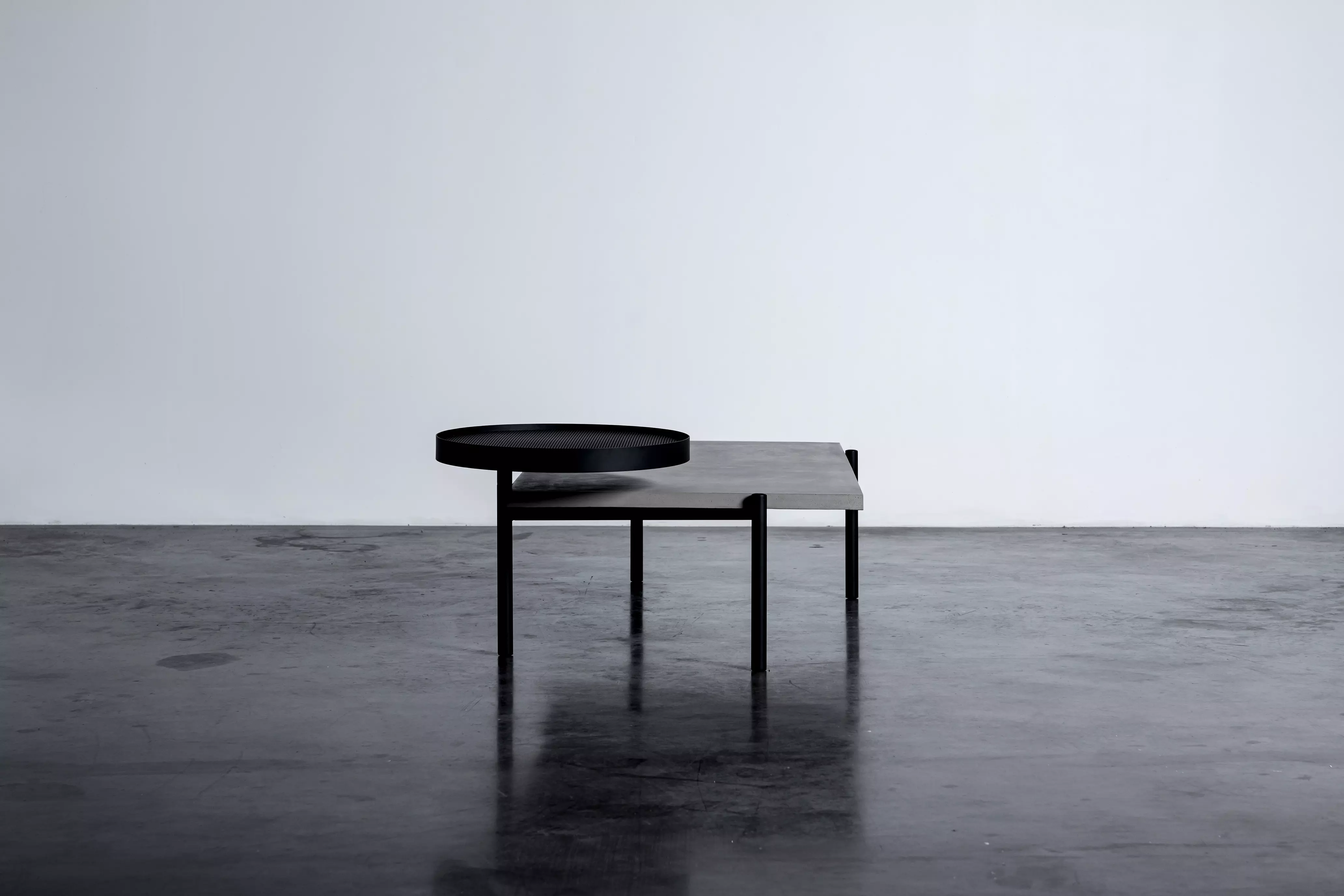 Die Twist-Kollektion, bestehend aus einem Couchtisch und einem Beistelltisch aus Beton, erzählt die Geschichte einer harmonischen Gegenüberstellung von Form und Material, von Ruhe und Bewegung.