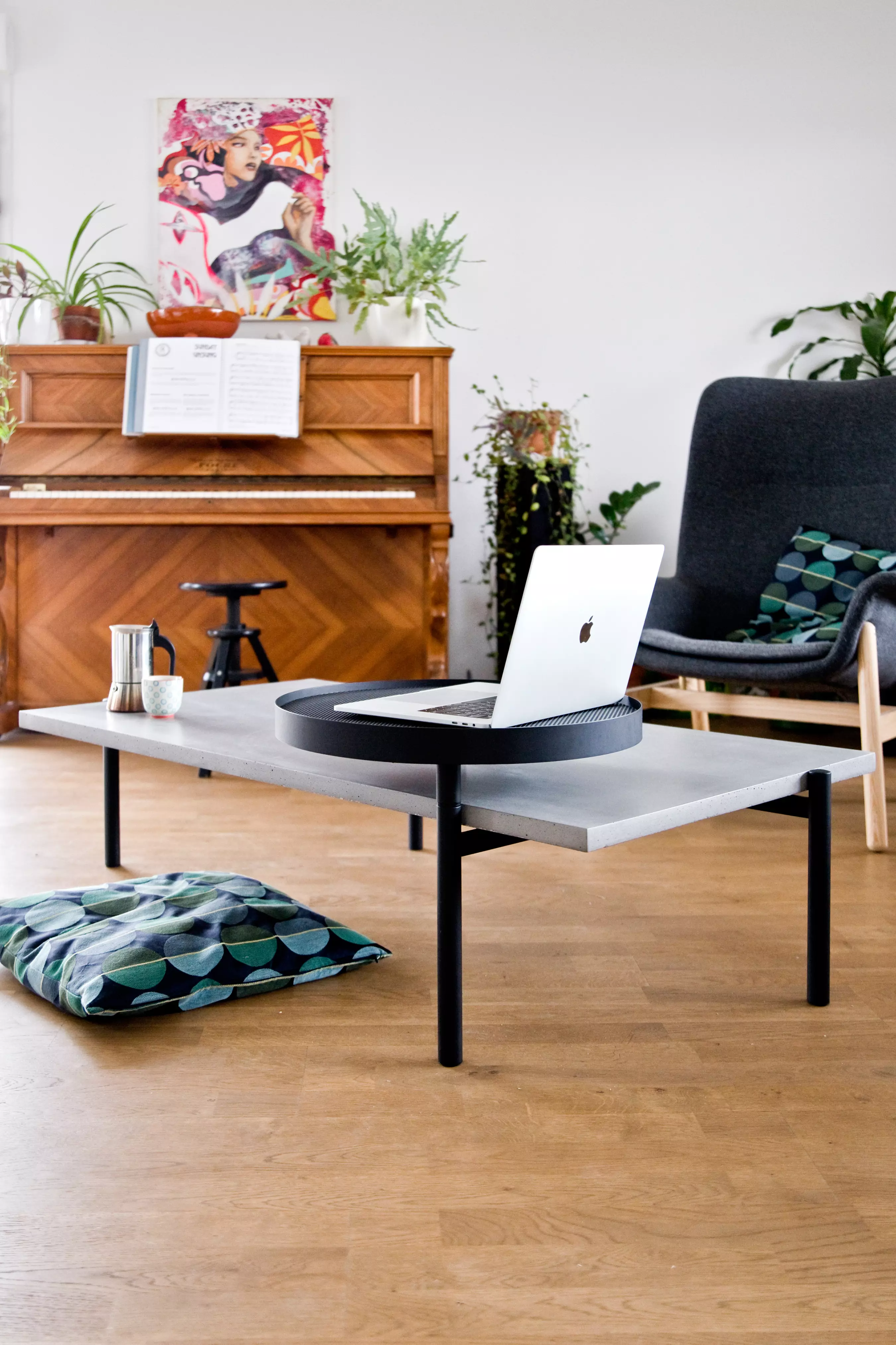 Auf der einen Seite: Beton. Fest, geradlinig, mineralisch. Beton verankert jedes Stück, während er deinen Wohnraum strukturiert.