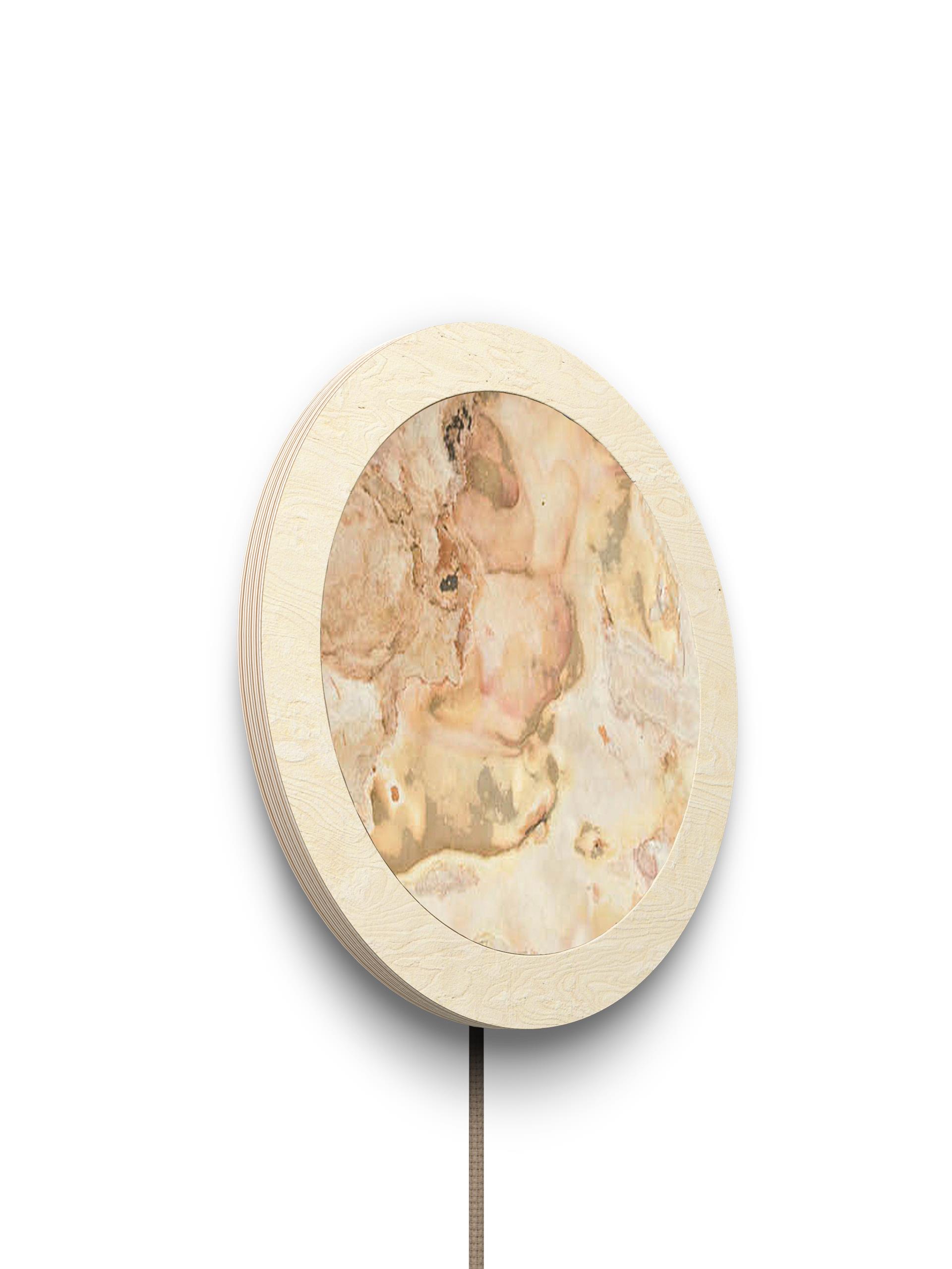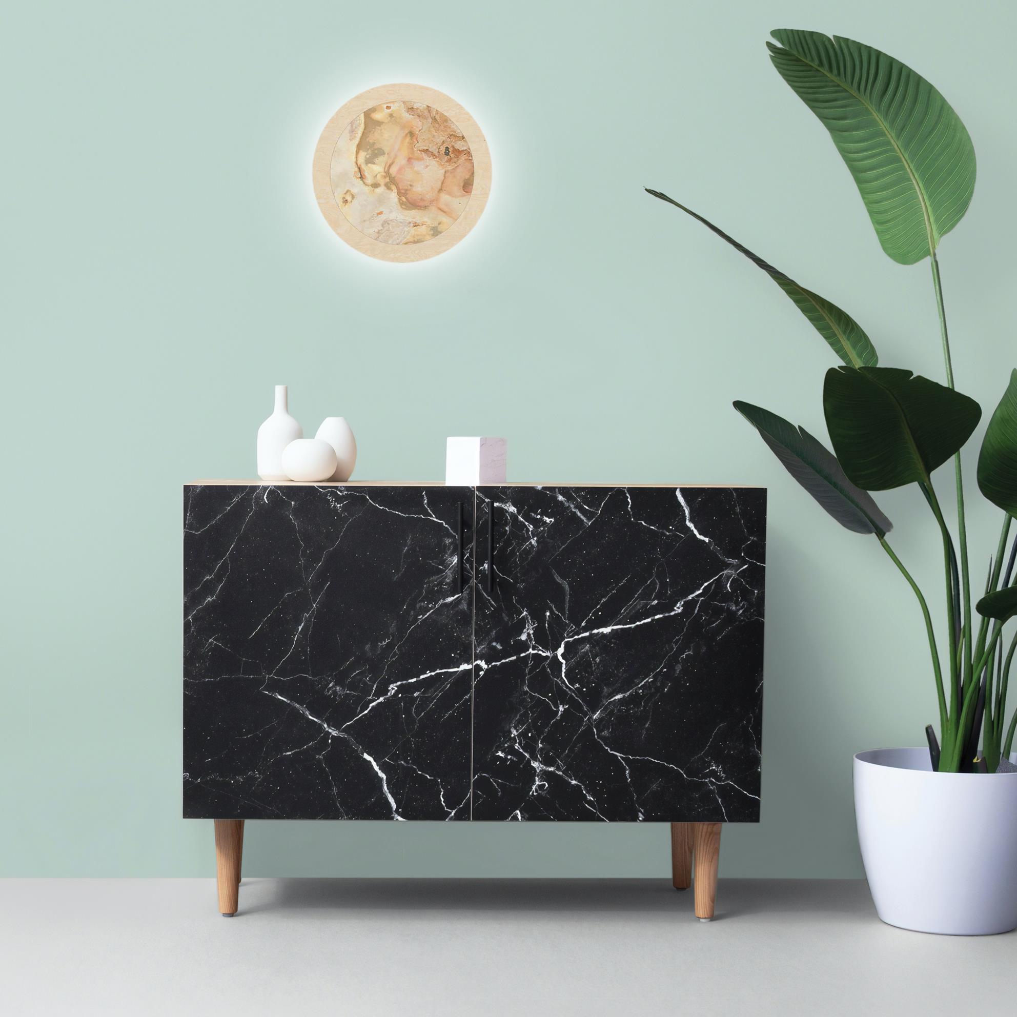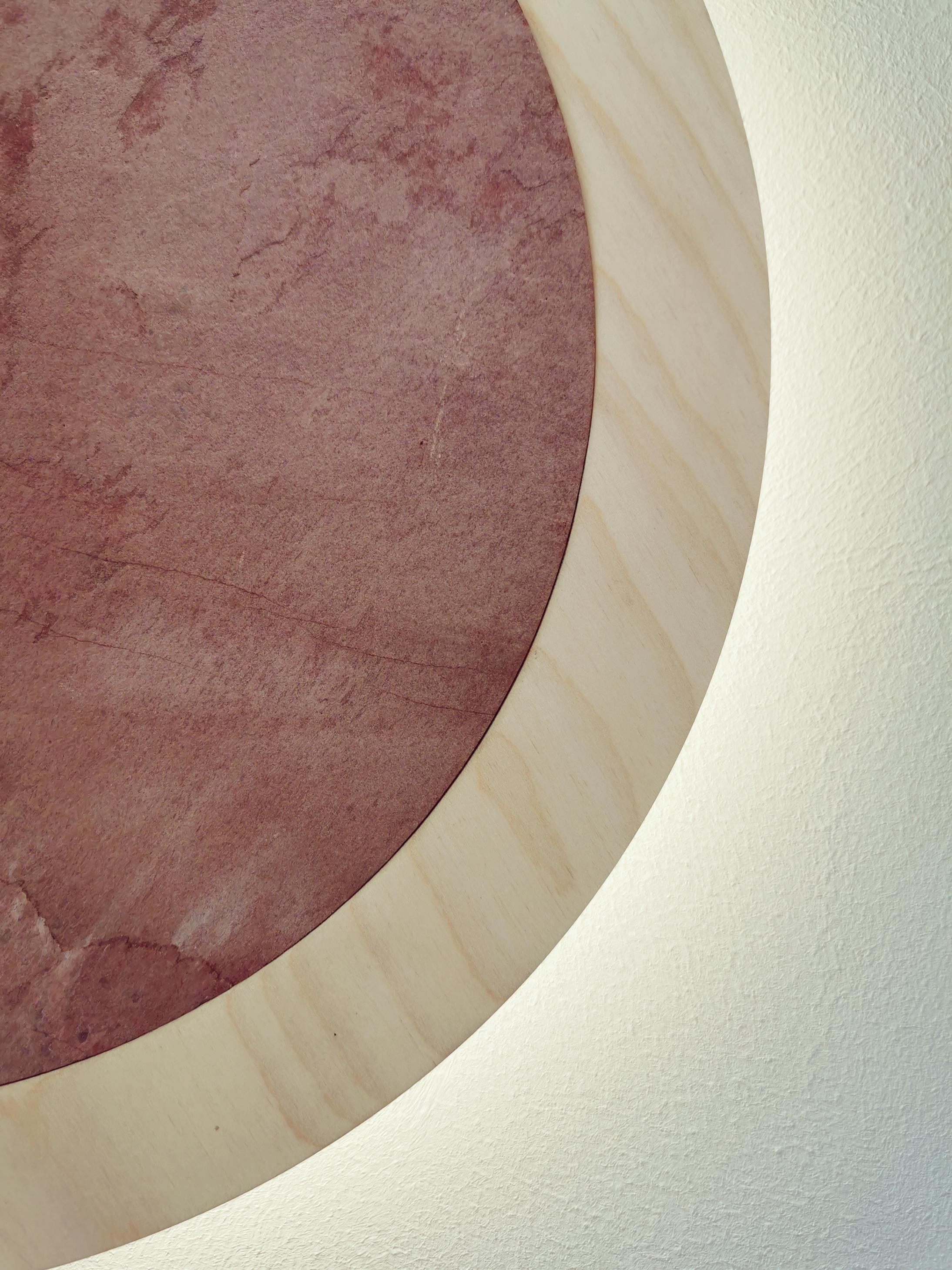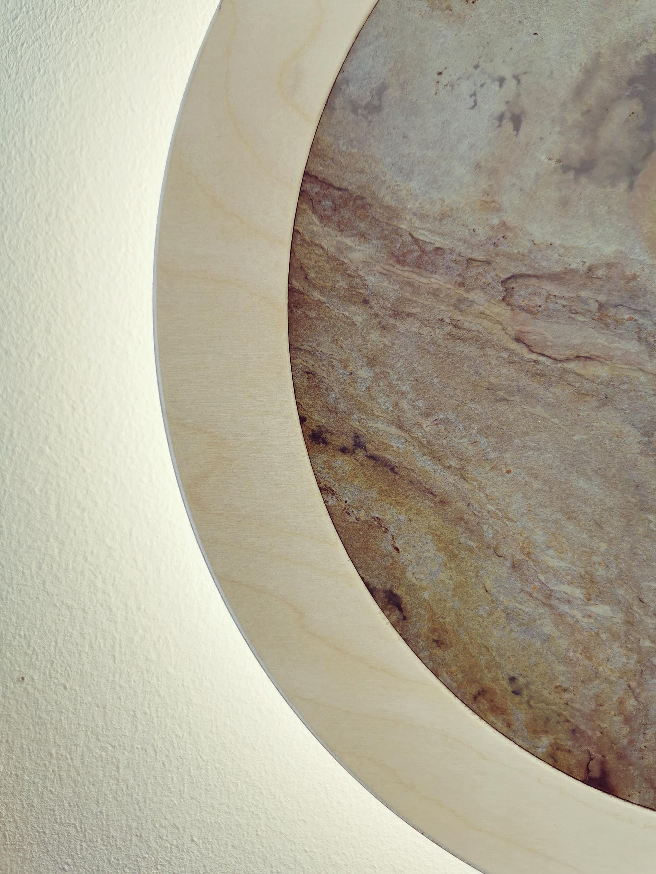 Jede ALMUT LED-Wandleuchte ist ein Unikat, da sie von Hand in den Alpen gefertigt wird und jede Holzmaserung sowie jedes Naturdekor einzigartig sind.