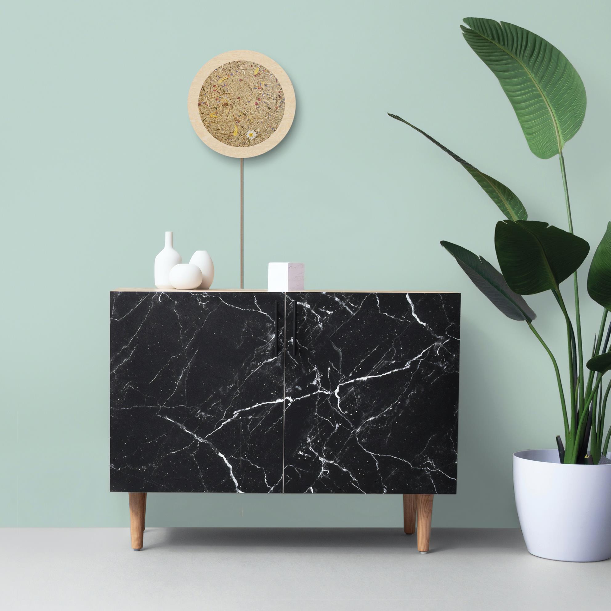 Das minimalistische Design fügt sich problemlos in jeden modernen Innenraum ein und die natürlichen Materialien wie Birke, Stein und Almwiesengräser sorgen für eine vertraute und gemütliche Atmosphäre.