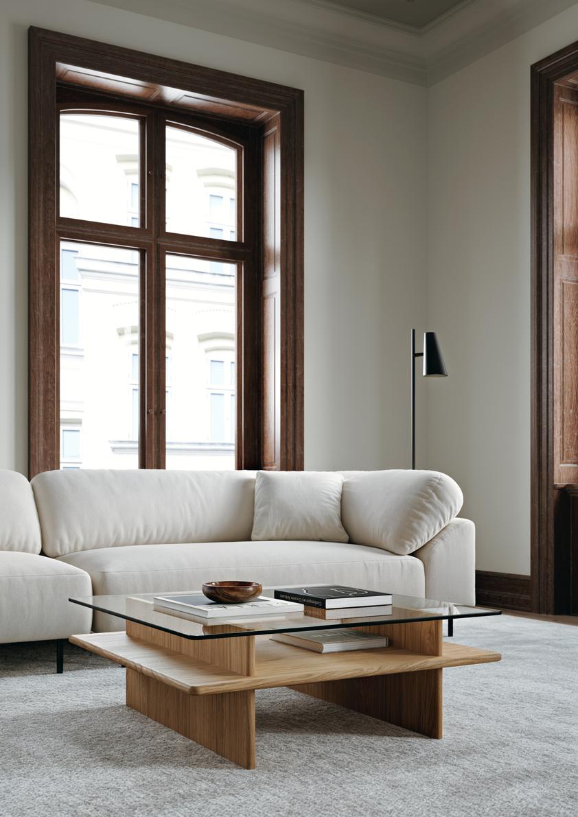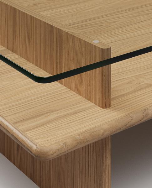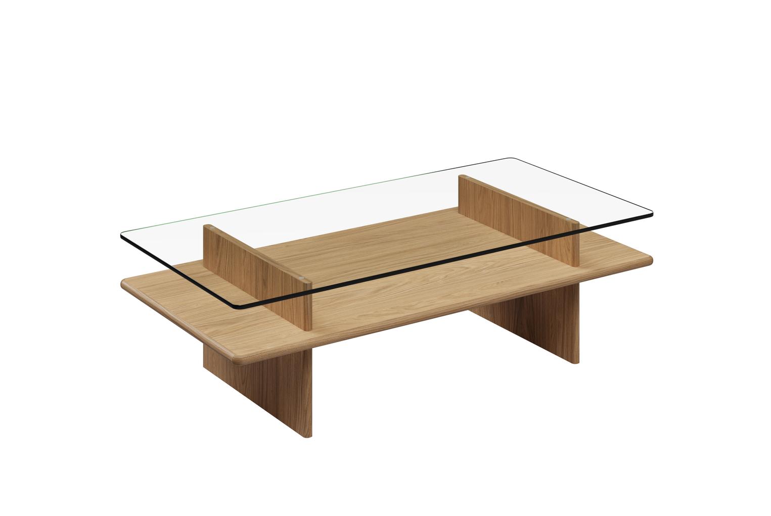 Das Design kombiniert japanische und skandinavische Ästhetik und besticht durch abgerundete Kanten sowie ein grafisches, anspruchsvolles Erscheinungsbild. Der Tisch besteht aus FSC™-zertifizierter Eiche und ist mit 10 mm gehärtetem Glas ausgestattet, was ihn sowohl langlebig als auch elegant macht. Dank der platzsparenden Verpackung lässt er sich einfach transportieren und aufstellen. Er eignet sich ideal für Wohnzimmer, um vor dem Sofa präsentiert zu werden, und bietet perfekten Raum, um Coffeetable-Bücher und Zeitschriften stilvoll in Szene zu setzen. Zudem können zwei Tische wunderbar nebeneinander kombiniert werden, um zusätzliche Fläche zu schaffen.