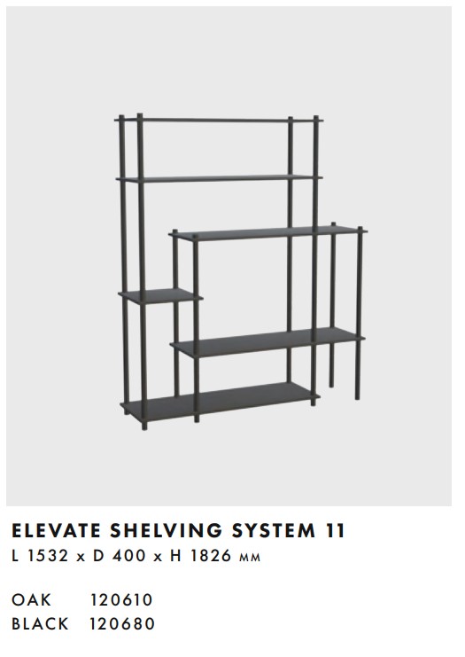 Elevate ist ein modulares Regalsystem mit endlosen Möglichkeiten. Mit verschiedenen Regalen und Dübeln kann Elevate ohne Verwendung von Werkzeugen in einer unbegrenzten Anzahl von Permutationen erweitert und zusammengebaut werden.